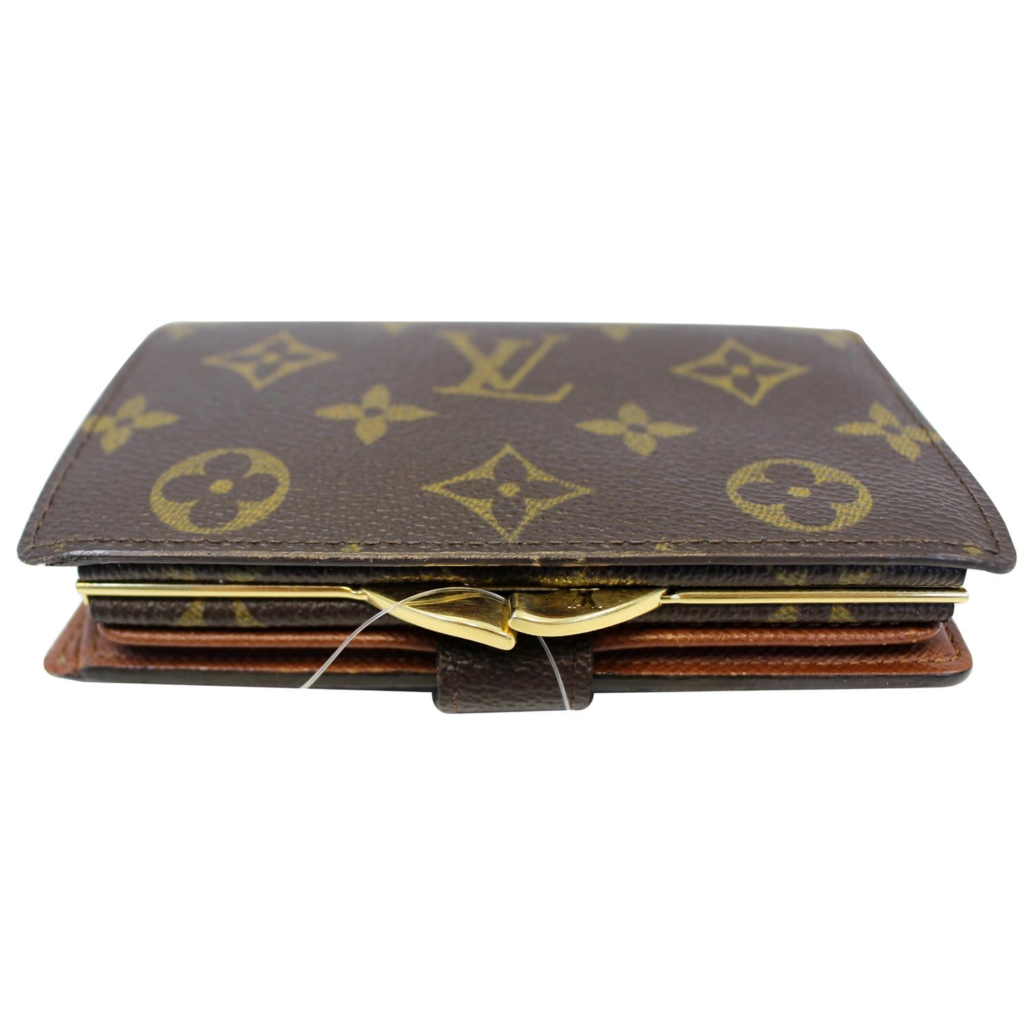 LOUIS VUITTON French Kisslock Monogram Canvas Wallet Brown