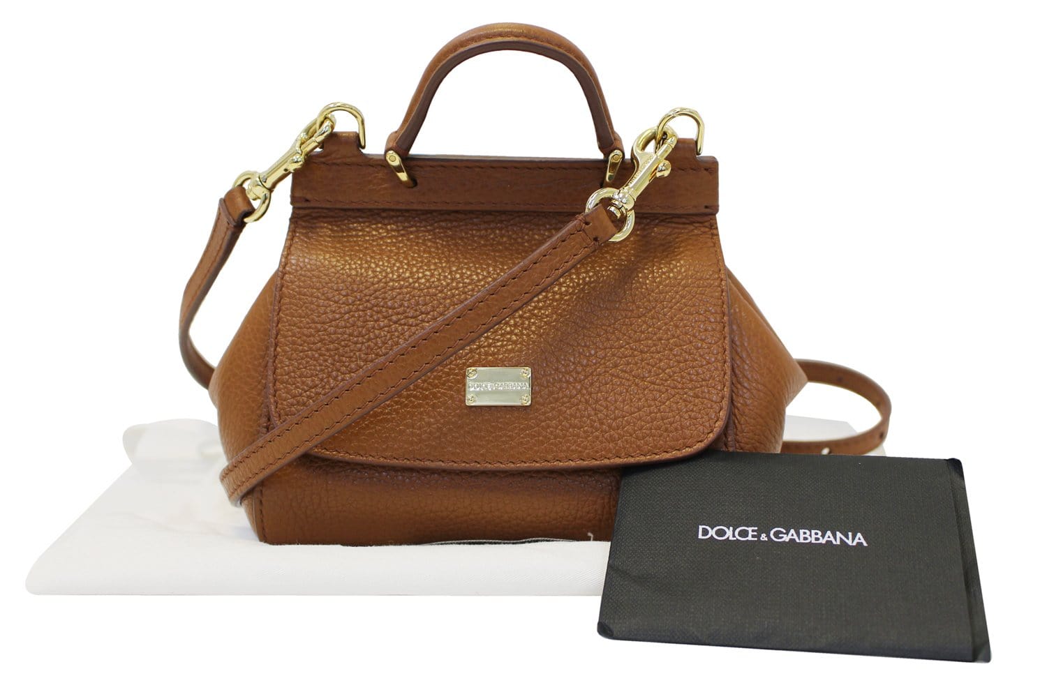 Dolce & Gabbana’s signature Sicily shoulder bag pays tribute to the beauty of the Italian design duo’s native Sicily. Exquisitely crafted from the finest calf leather, the Sicily shoulder bag is a timeless classic. Caramel brown calf leather small Sicily shoulder bag from Dolce & Gabbana featuring a top handle, a foldover top with magnetic closure, a leopard print lining, a gold-tone logo plaque, and a detachable and adjustable shoulder strap.
