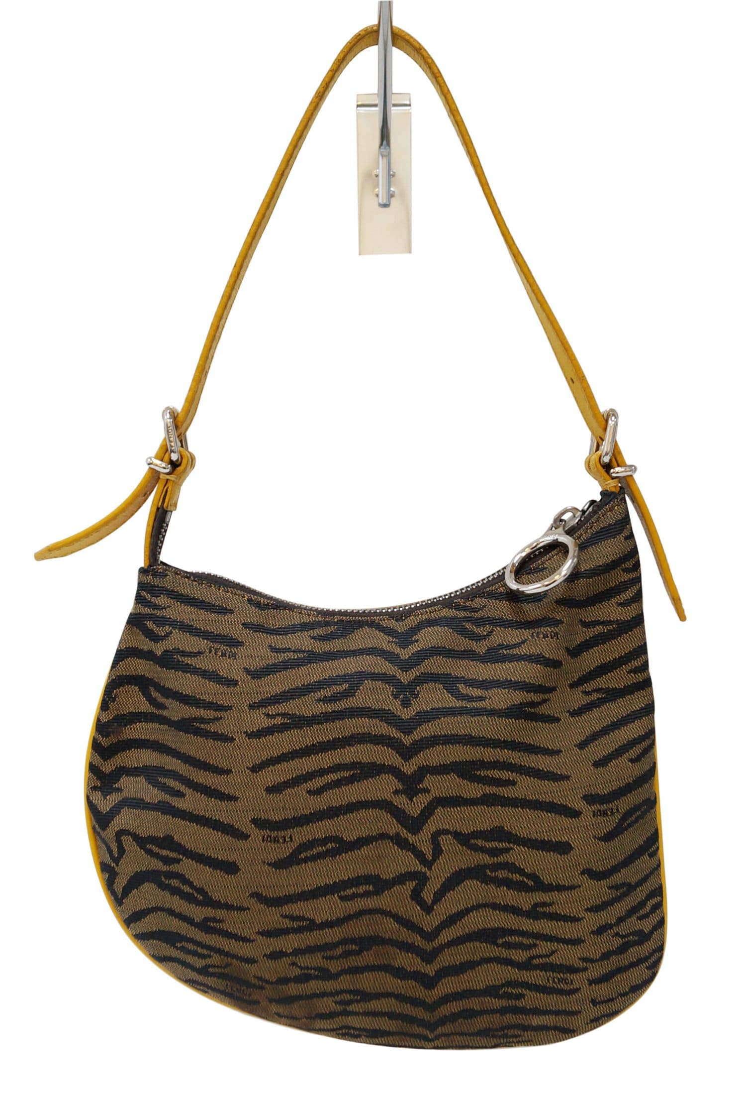 FENDI Canvas Zebra Print Oyster Hobo Bag