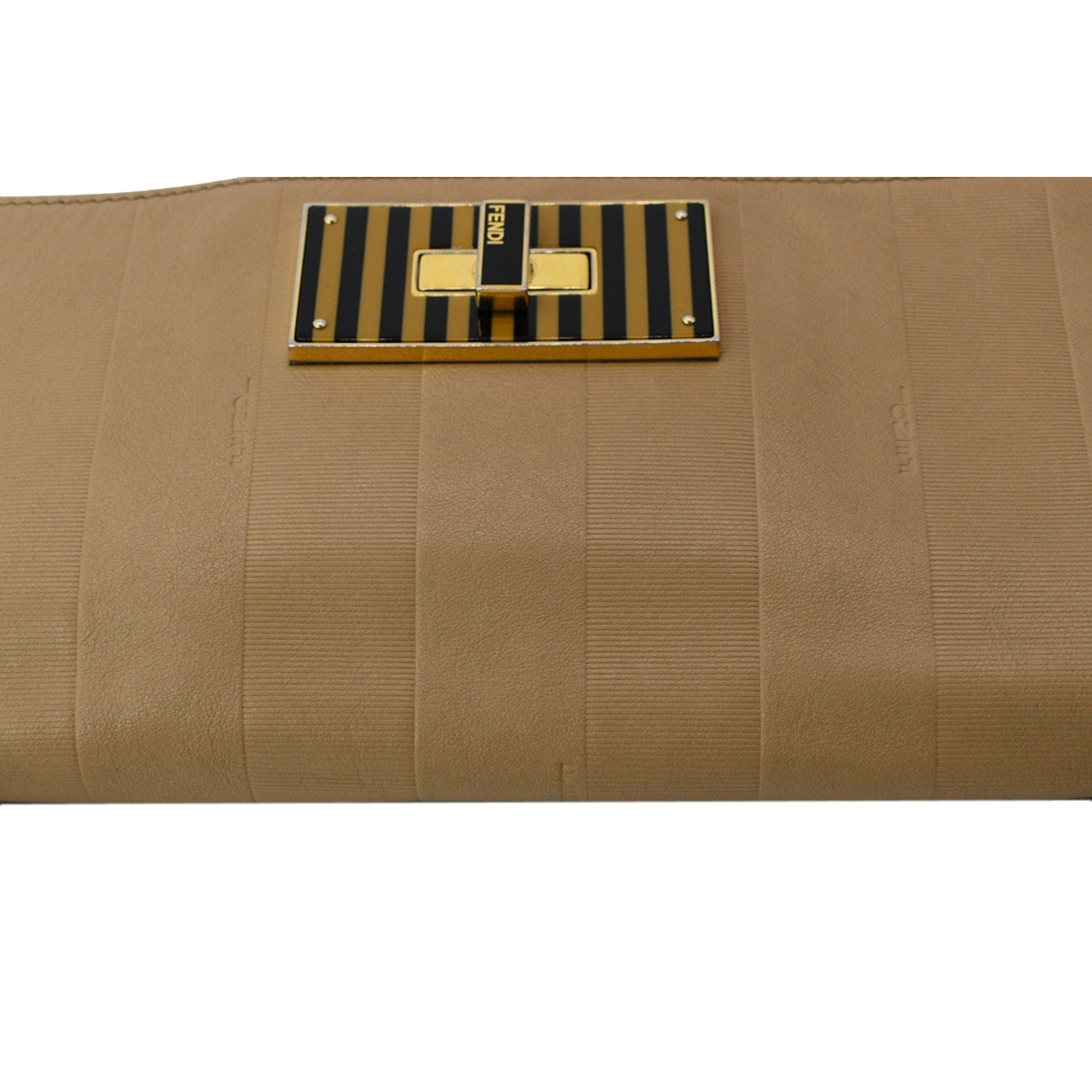 FENDI Claudia Pequin Embossed Leather Wallet Crossbody Bag Beige