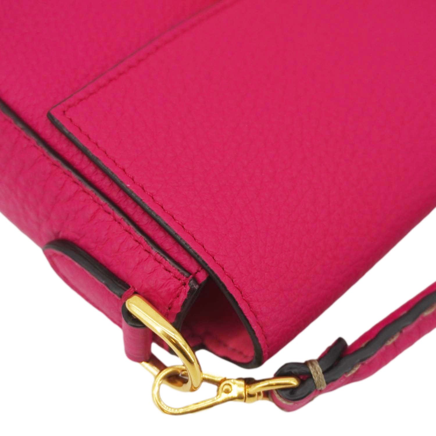 FENDI Selleria Cuoio Romano Leather Baguette Crossbody Bag Pink