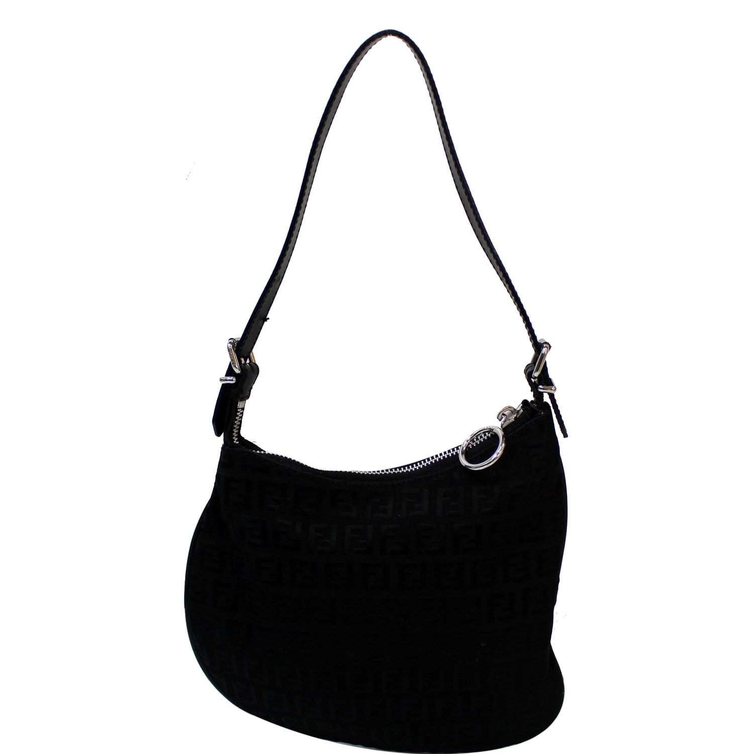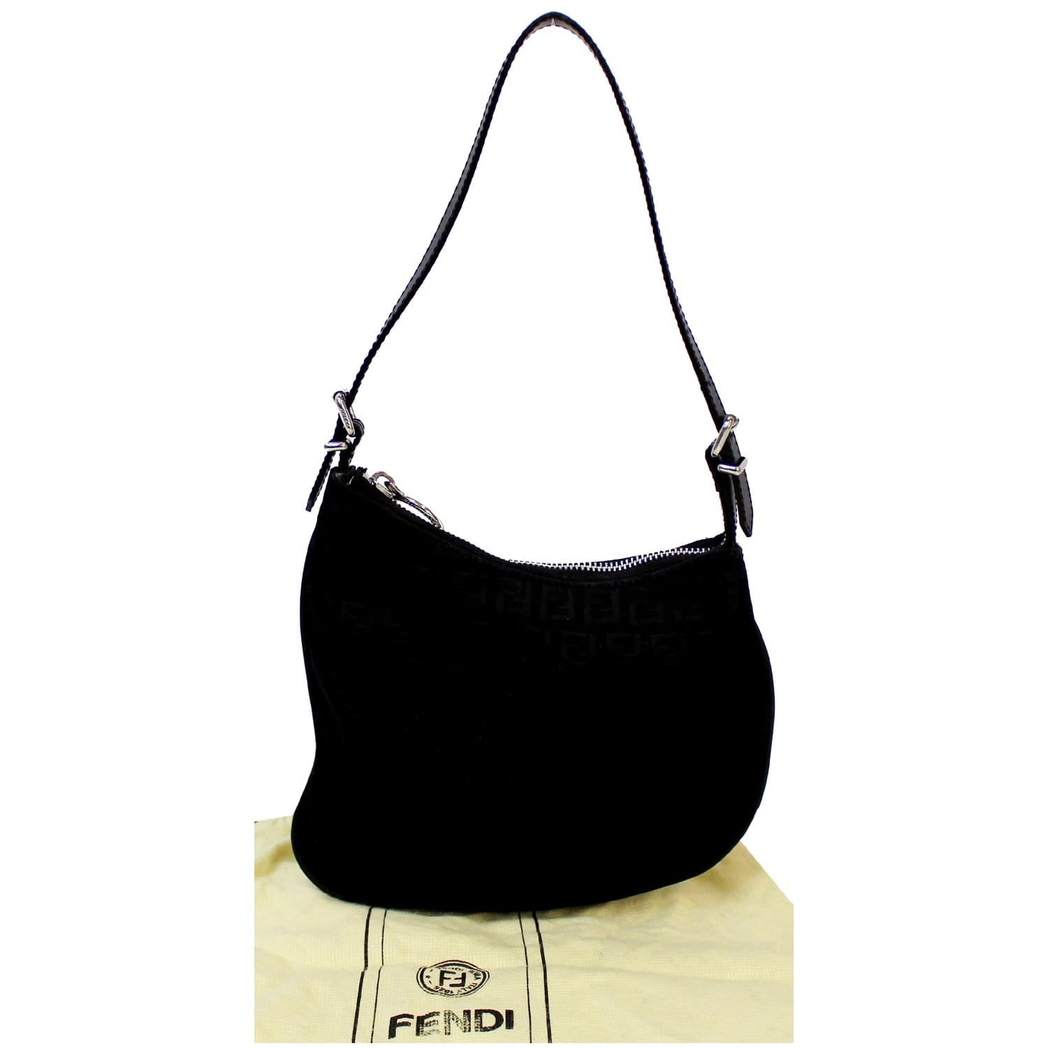 FENDI FF Zucchino Small Oyster Shoulder Bag Black