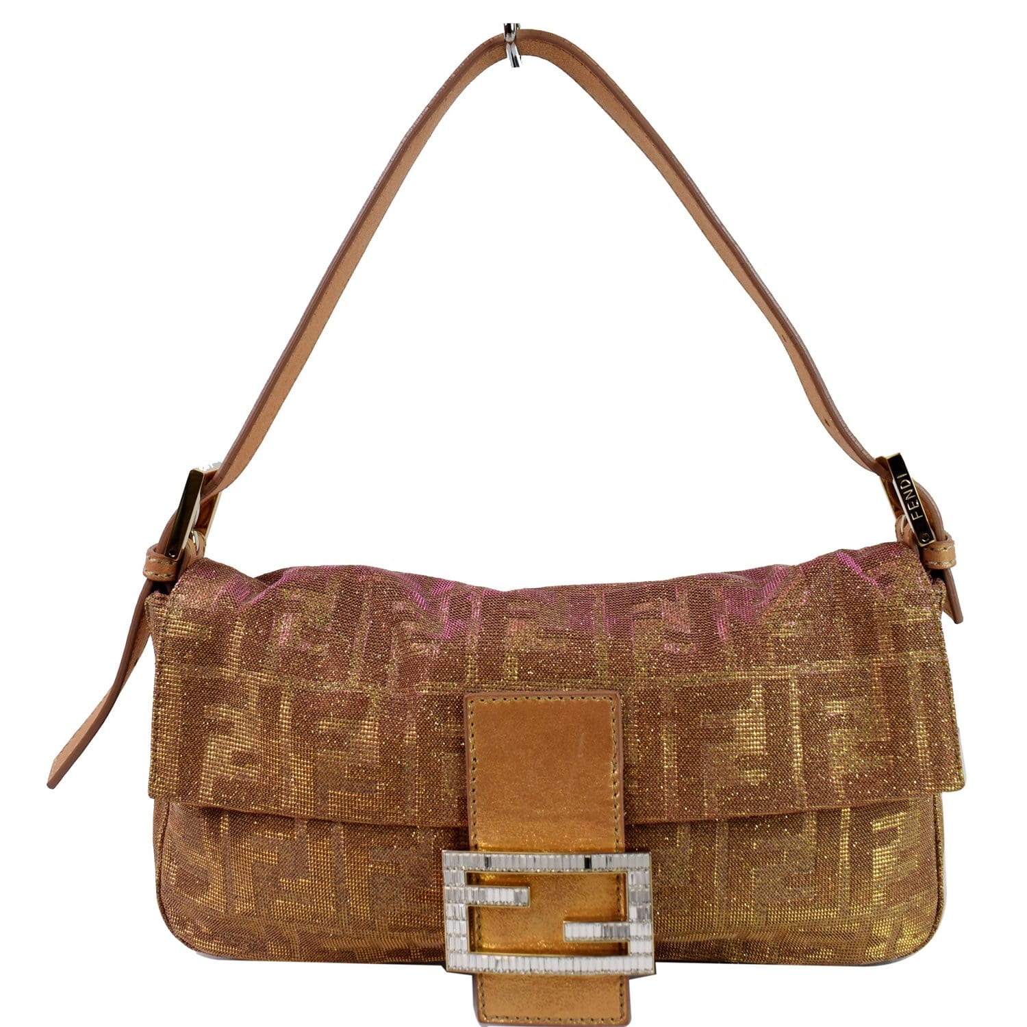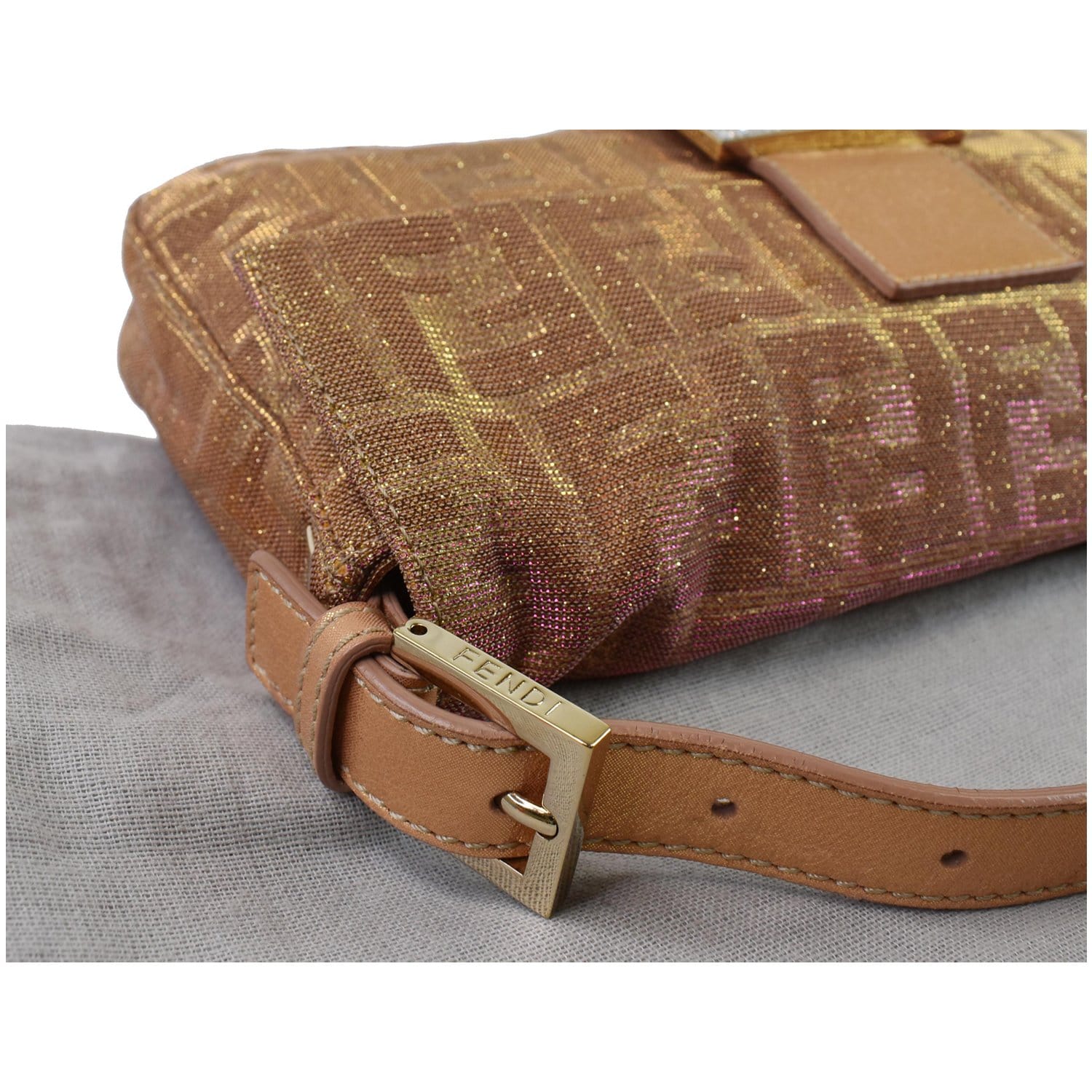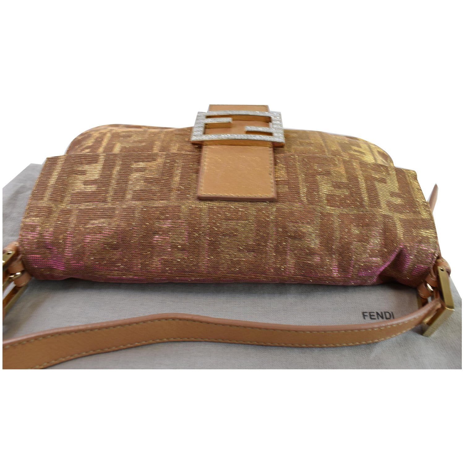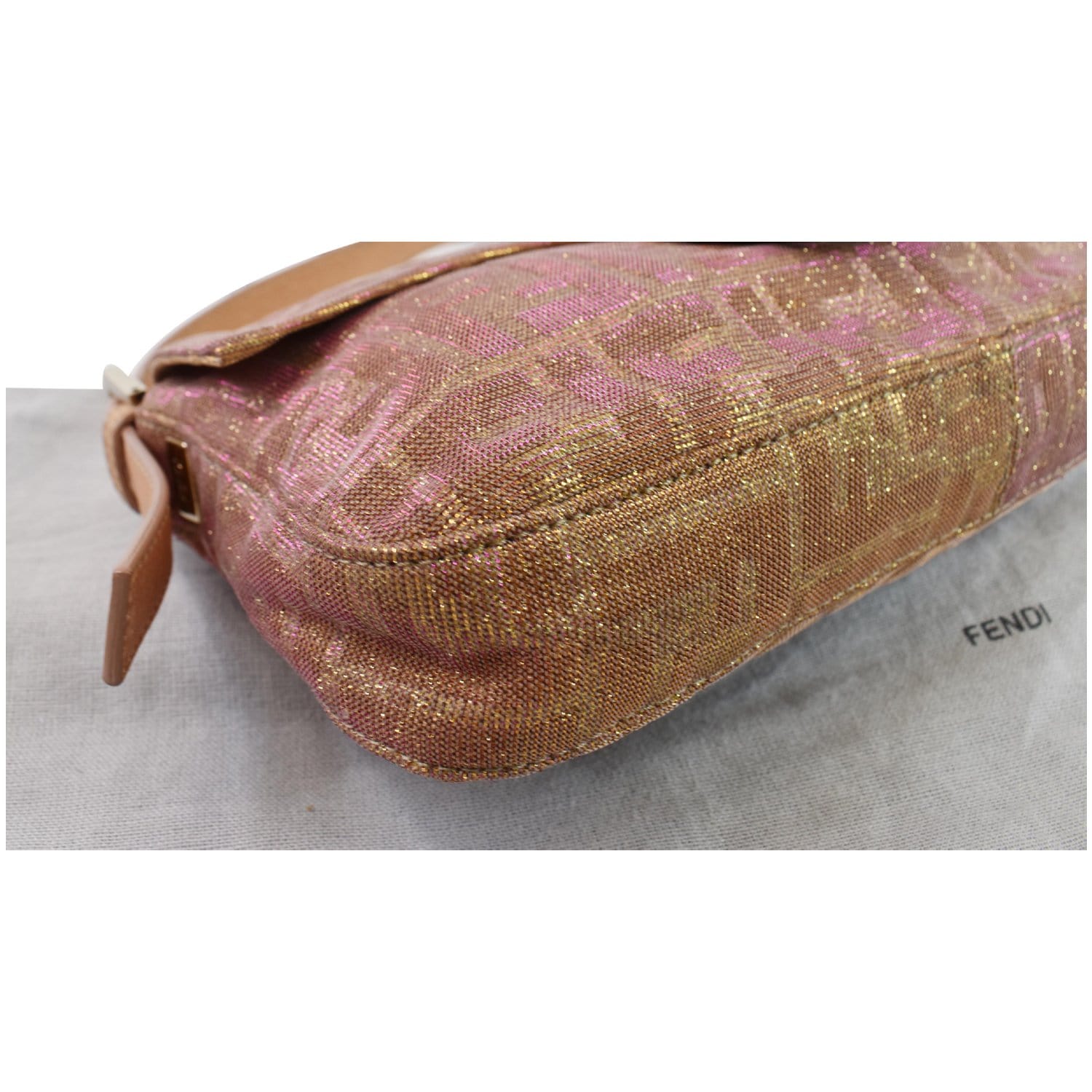 FENDI Glitter Zucca Canvas Magnetic Baguette Bag Metallic Pink