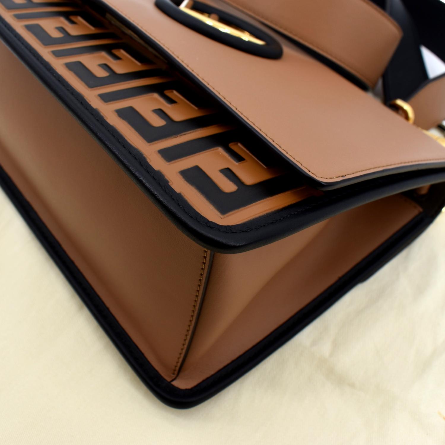 FENDI Kan I F Zucca Leather Shoulder Bag Tan