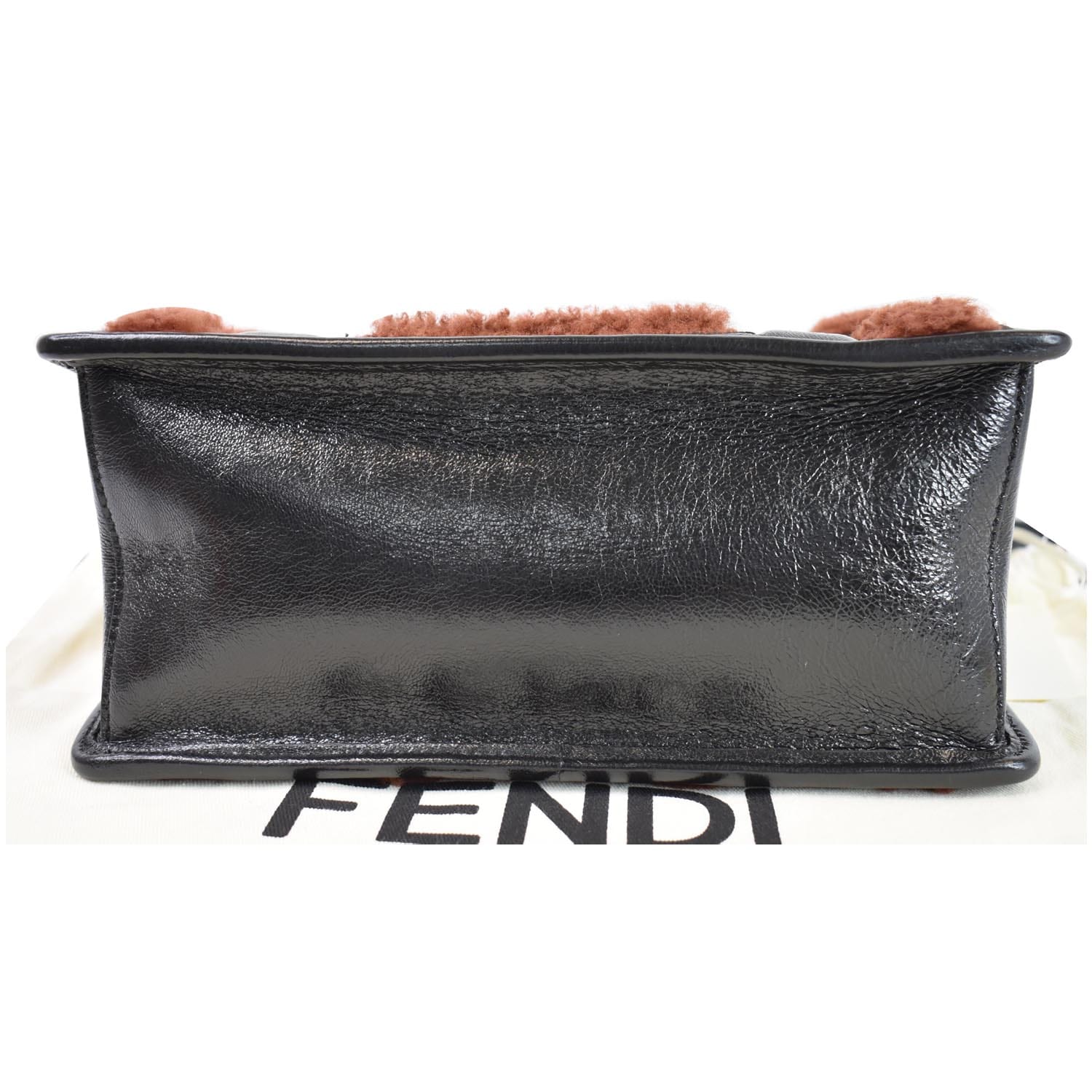 FENDI Kan U Medium Shearling Patent Leather Shoulder Bag Brown