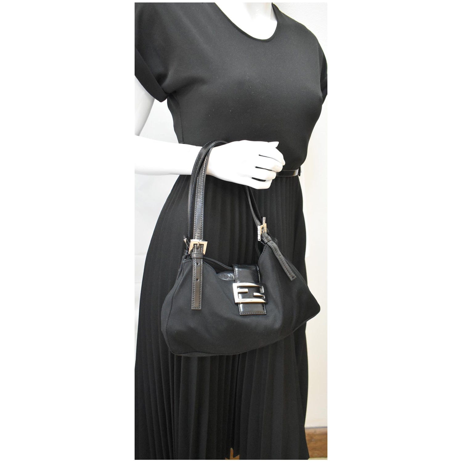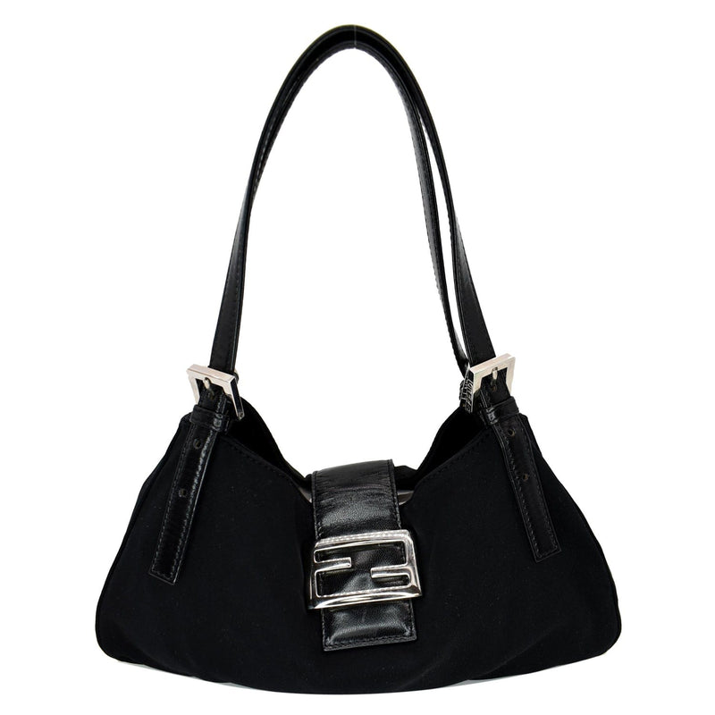 FENDI Mama Baguette Neoprene Canvas Shoulder Bag Black