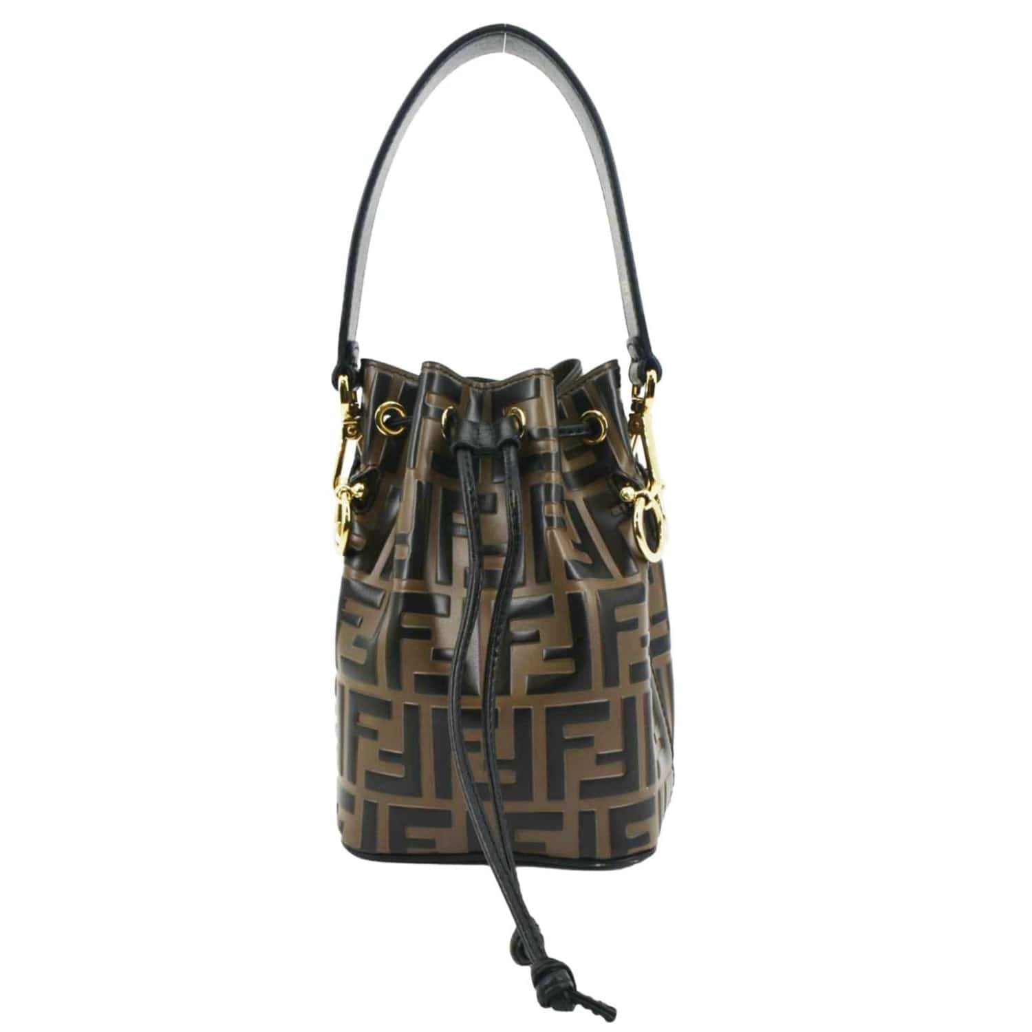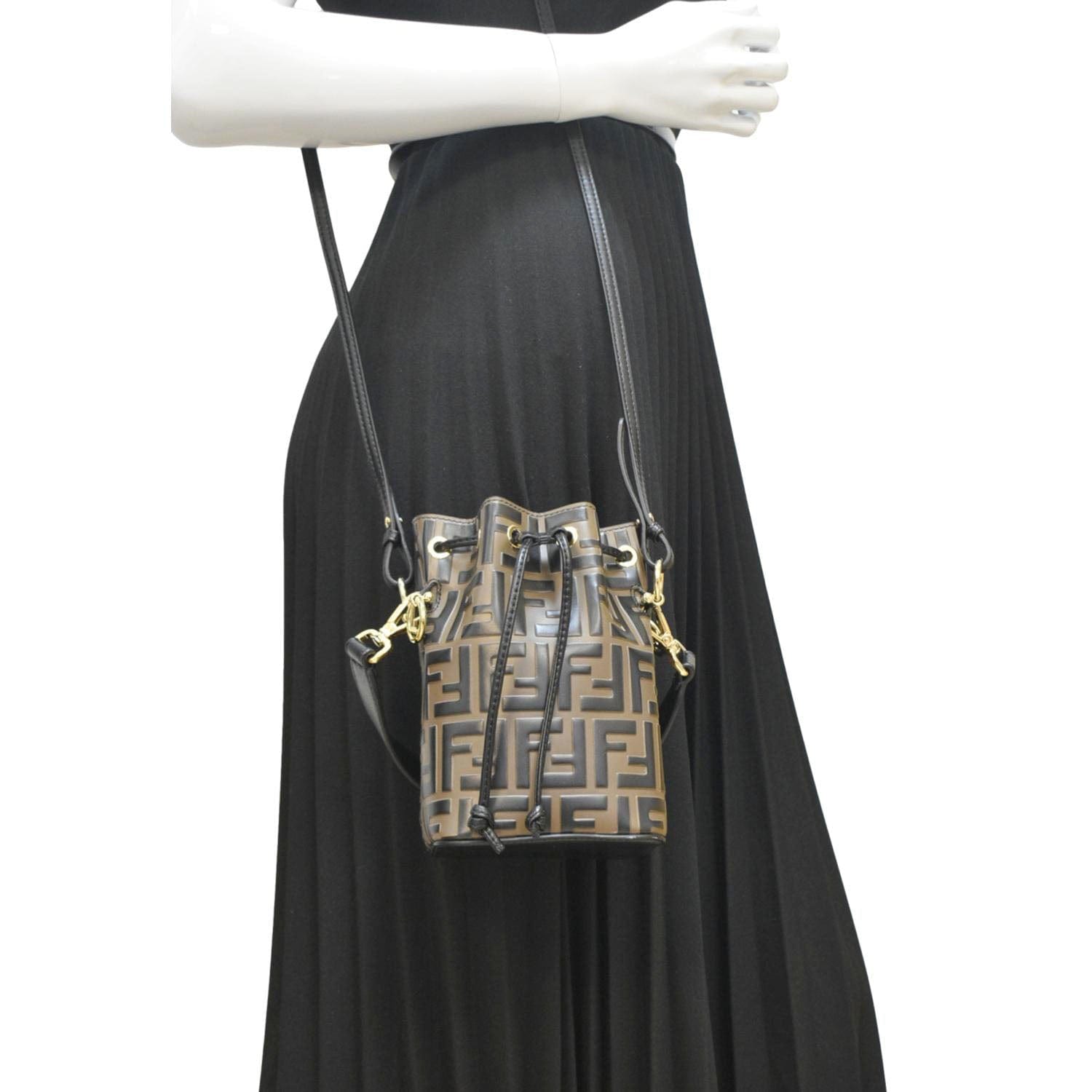 FENDI Mini Mon Tresor Leather Bucket Crossbody Bag Brown