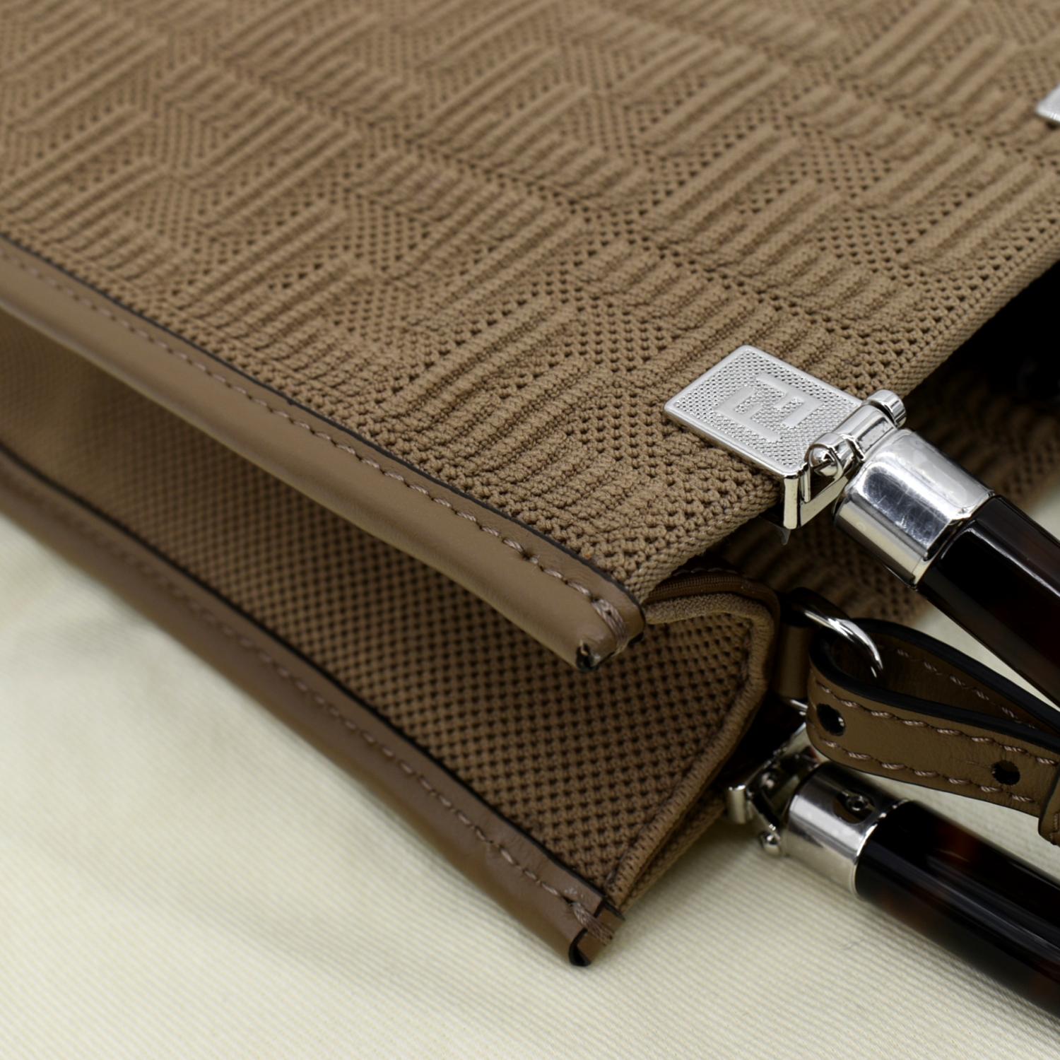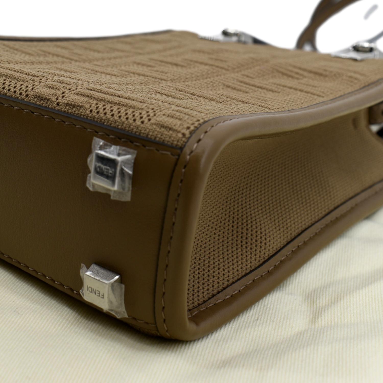 FENDI Mini Sunshine Plexiglass Technical Fabric Vitello Ceylon Shopper Tote Crossbody Bag Sand