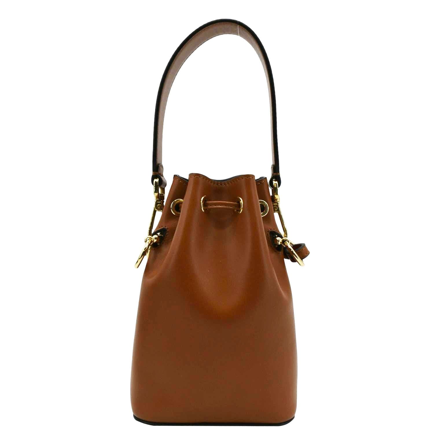 FENDI Mon Tresor Leather Bucket Hobo Bag Brown