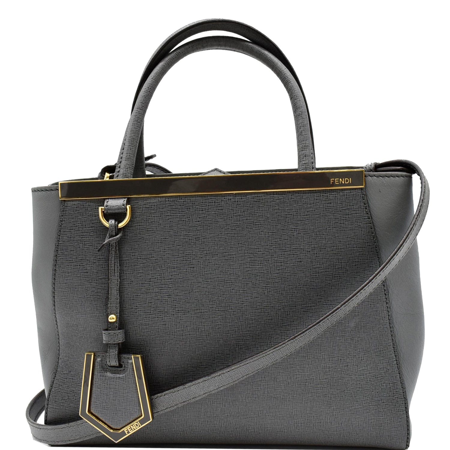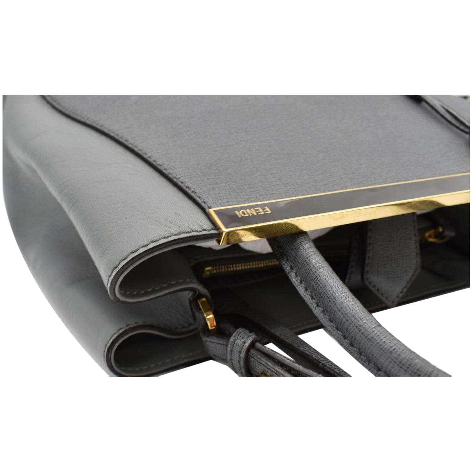 FENDI Petite 2Jours Vitello Elite Leather Tote Shoulder Bag Grey