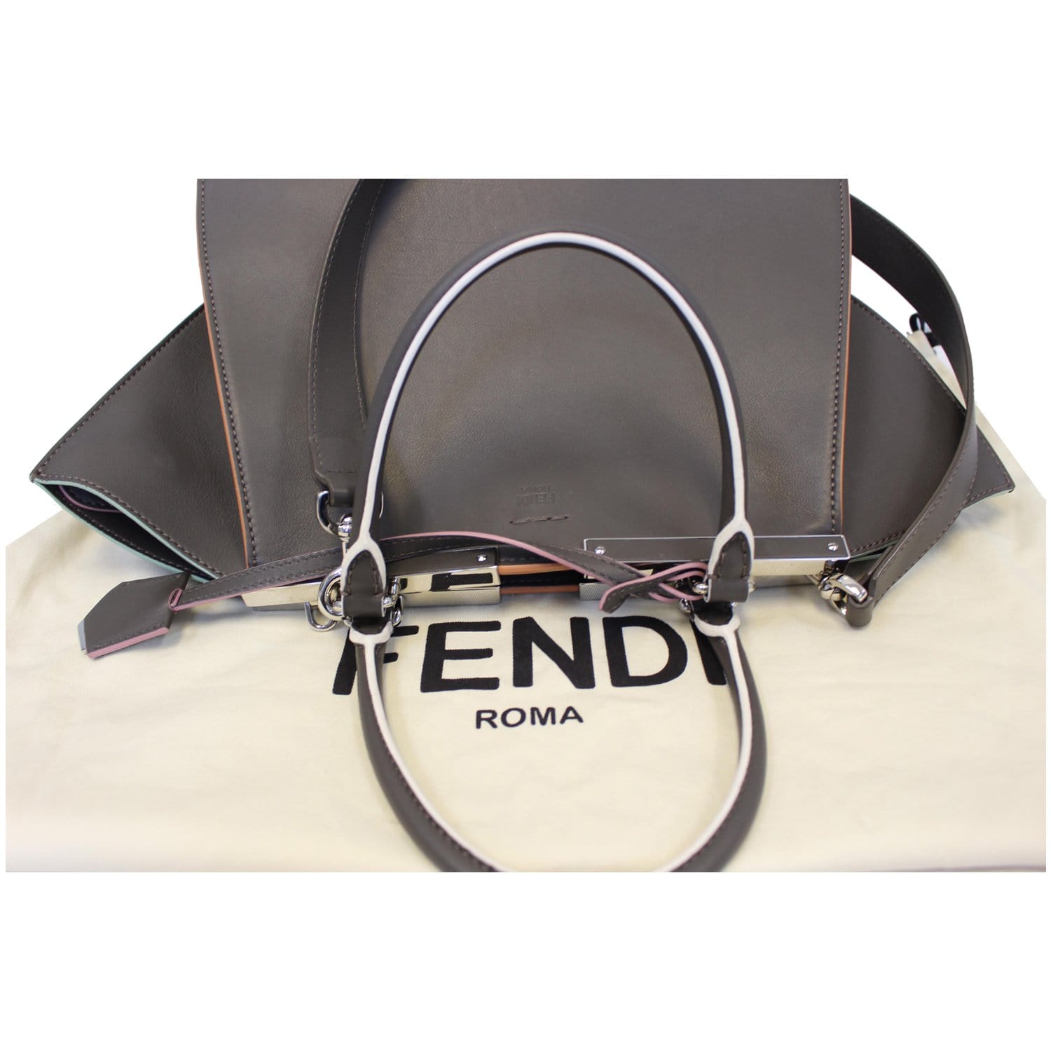 FENDI Petite 3Jours Calfskin Leather Tote Bag Dark Grey