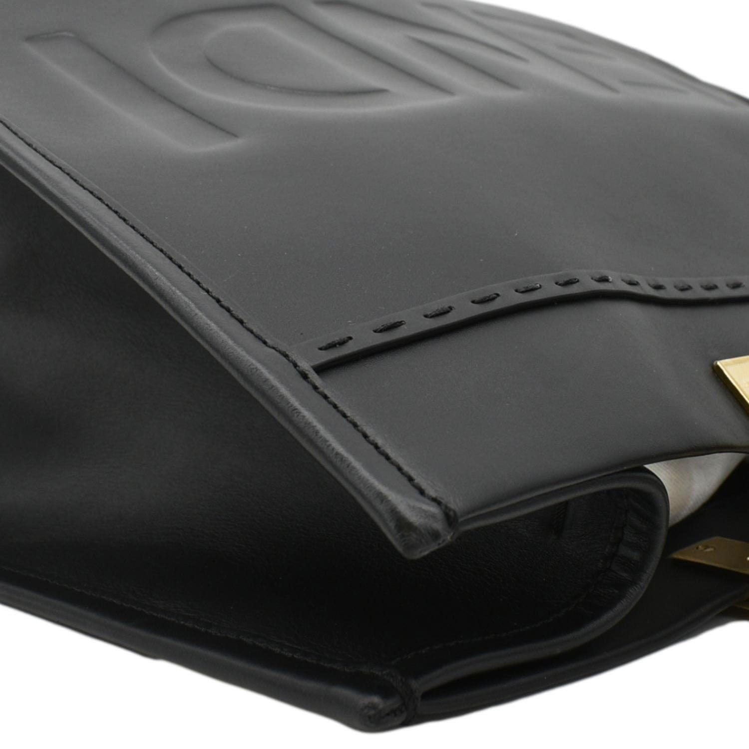 FENDI Sunshine Plexiglass Medium Leather Shopper Tote Bag Black