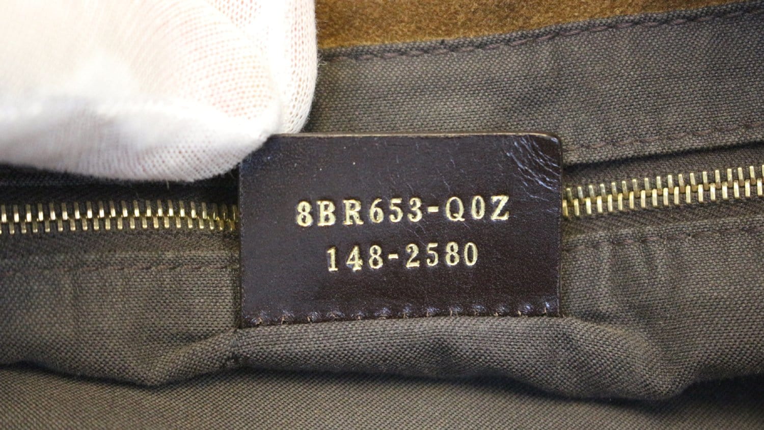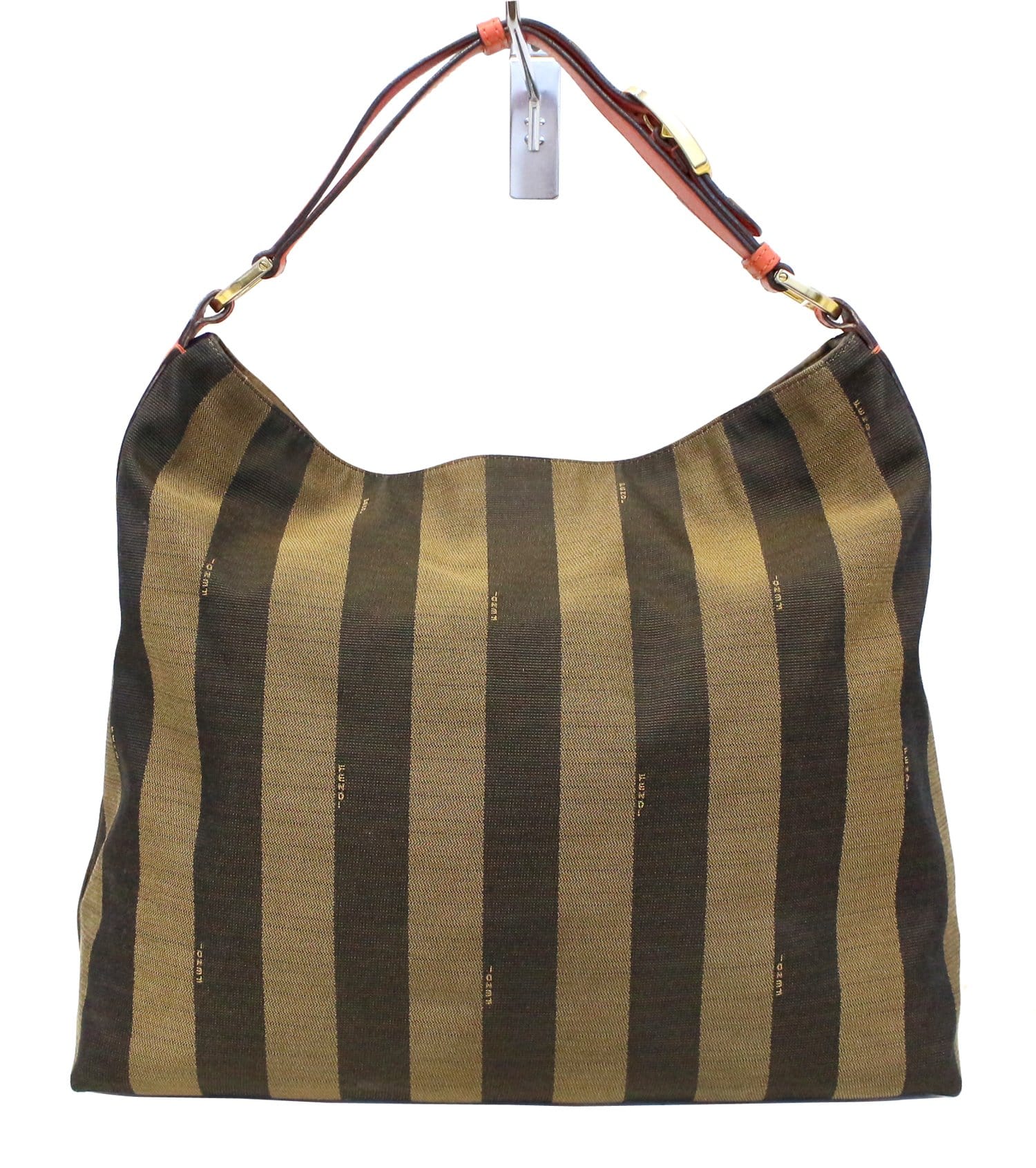 FENDI Tobacco and Red Leather Pequin Stripe Canvas Hobo Bag