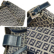 Fendi Zukka Pattern Hand Bag Navy Gray Canvas Leather Vintage Italy TT117
