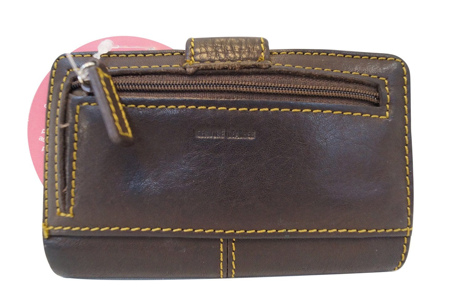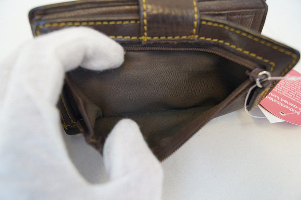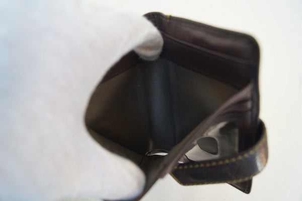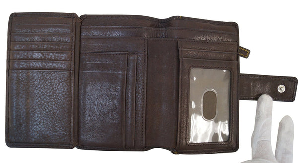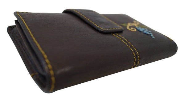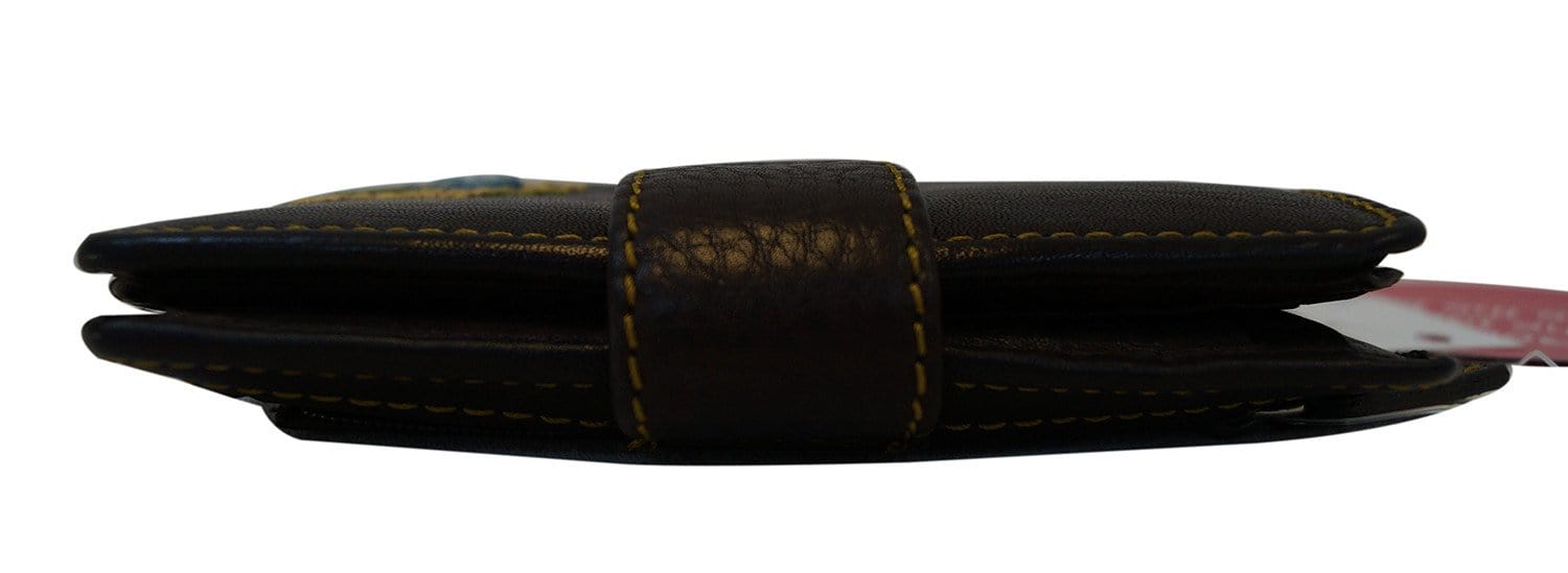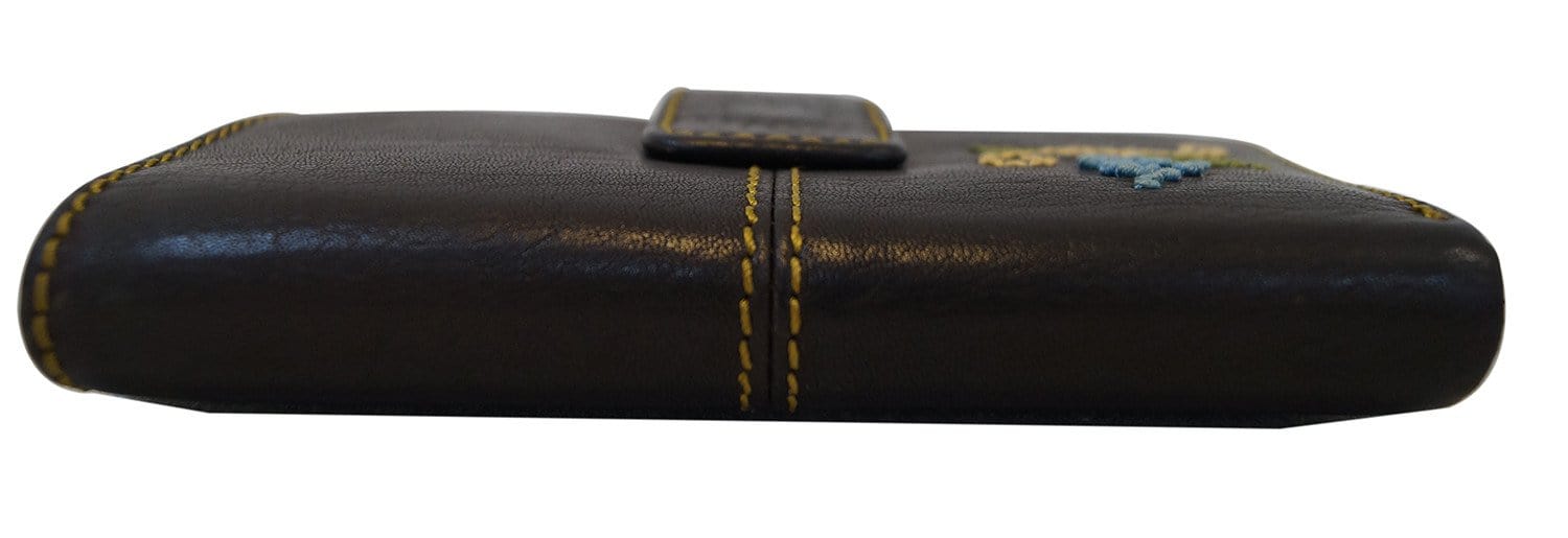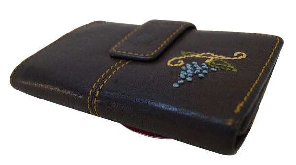 FOSSIL Dark Brown Leather Grape Applique Trifold Wallet