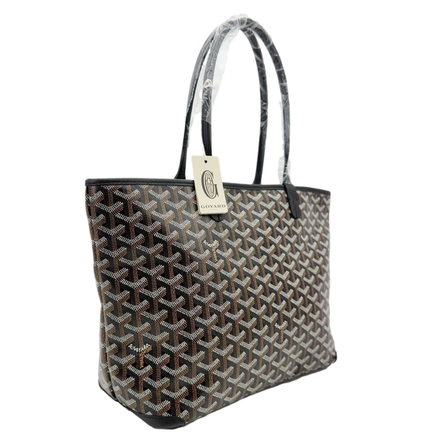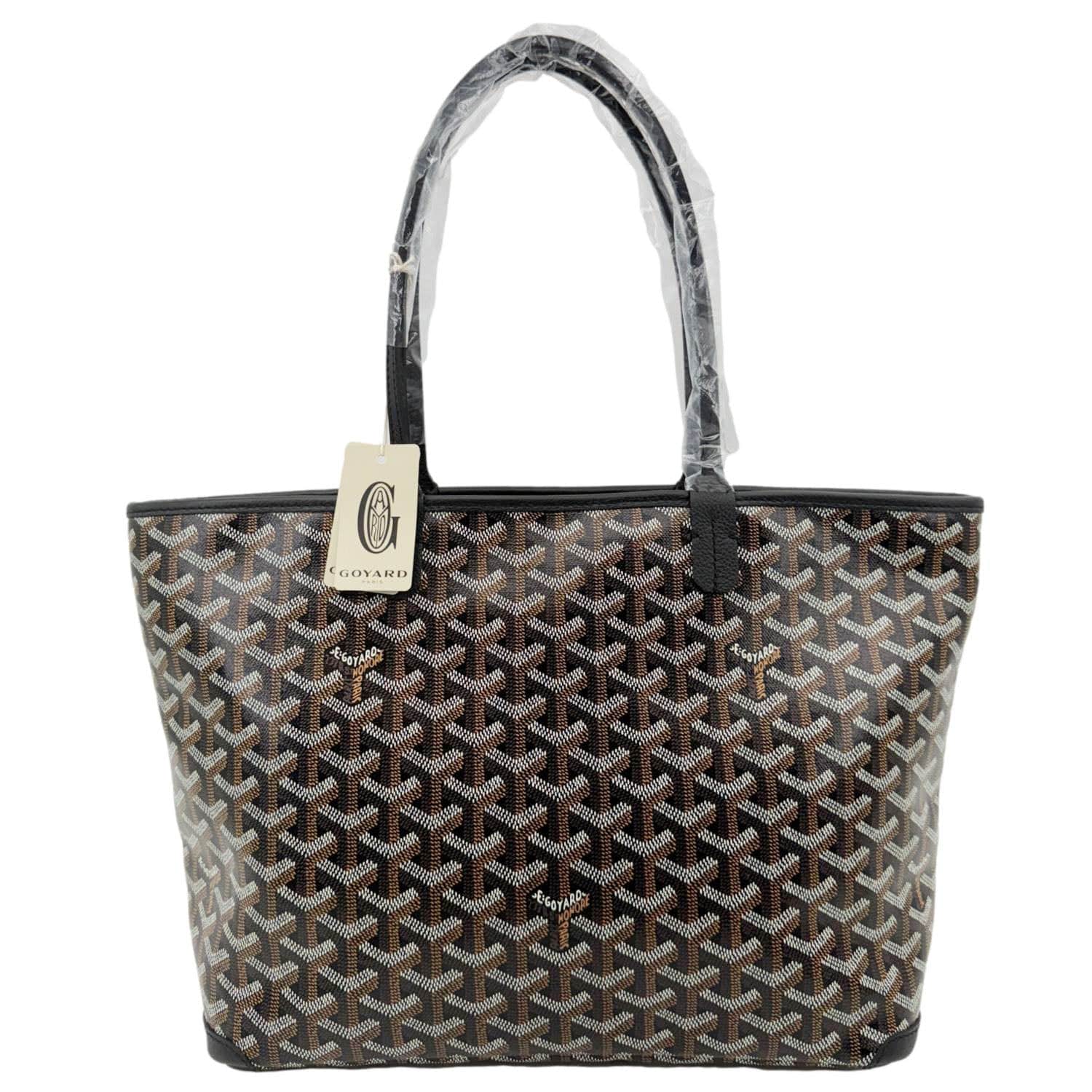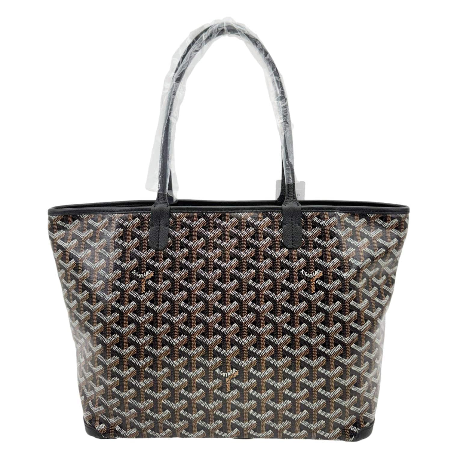 The GOYARD Artois PM Tote Bag in Black showcases the signature chevron print on durable coated canvas with reinforced leather corners. Designed for everyday use, it features a zip-top closure and structured silhouette for added security and style.