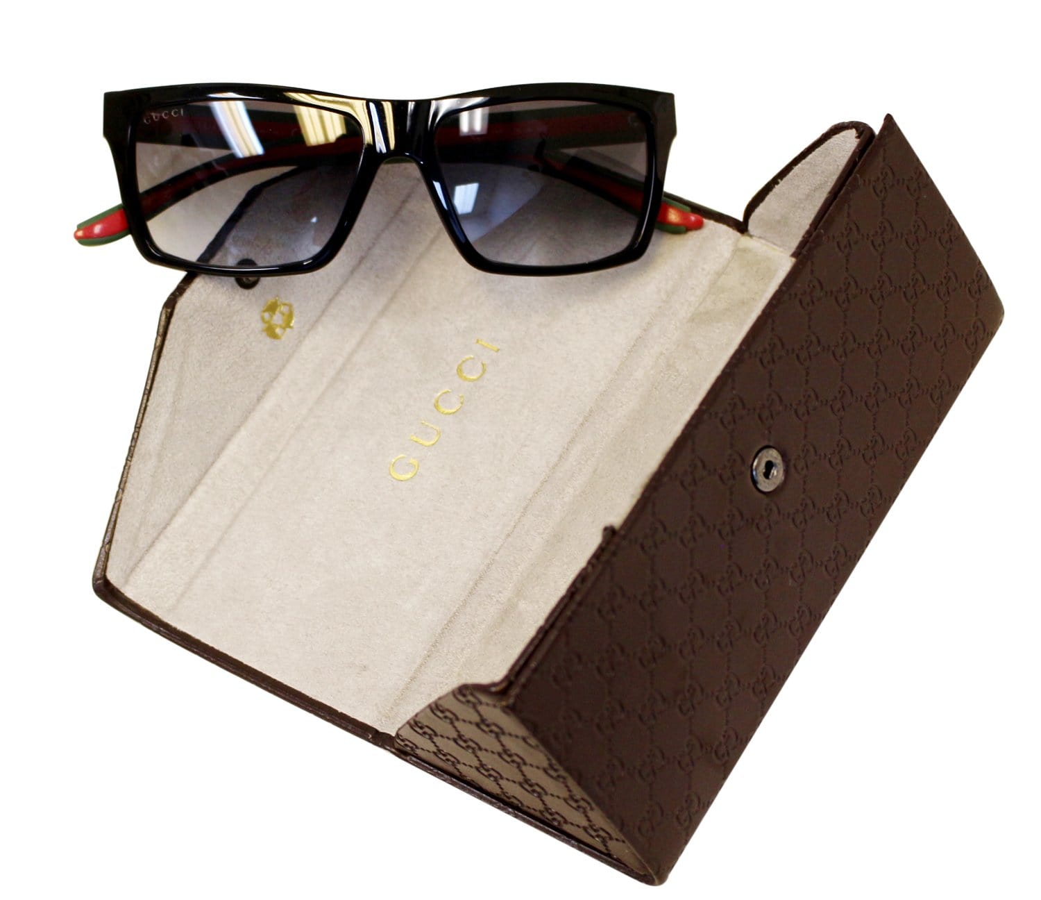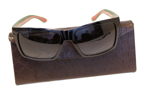 Gucci 1013 Shiny Black Rectangular Red/Green Web Logo Sunglasses GG 1013/S