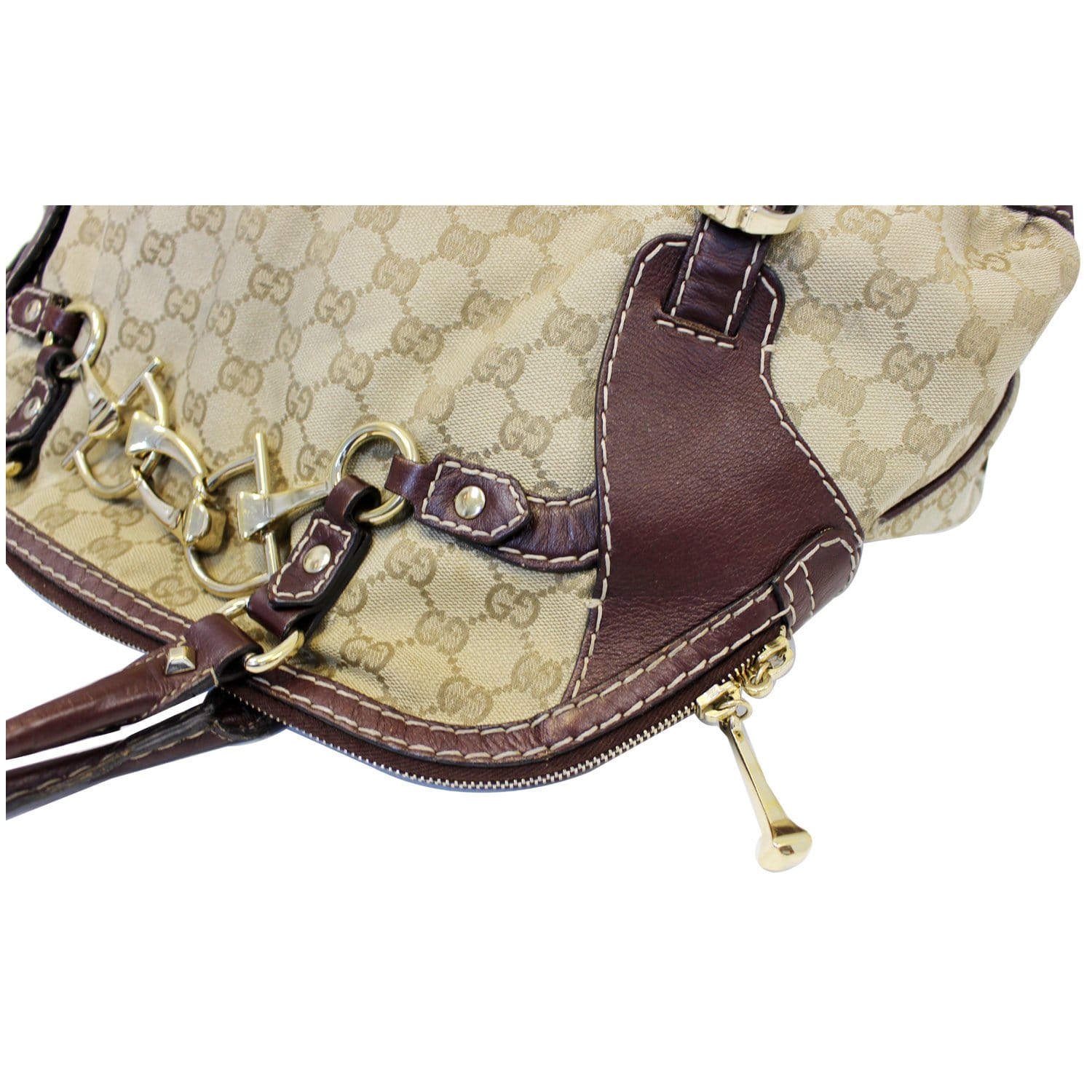 GUCCI Beige GG Canvas Horsebit Nail Medium Boston Bag