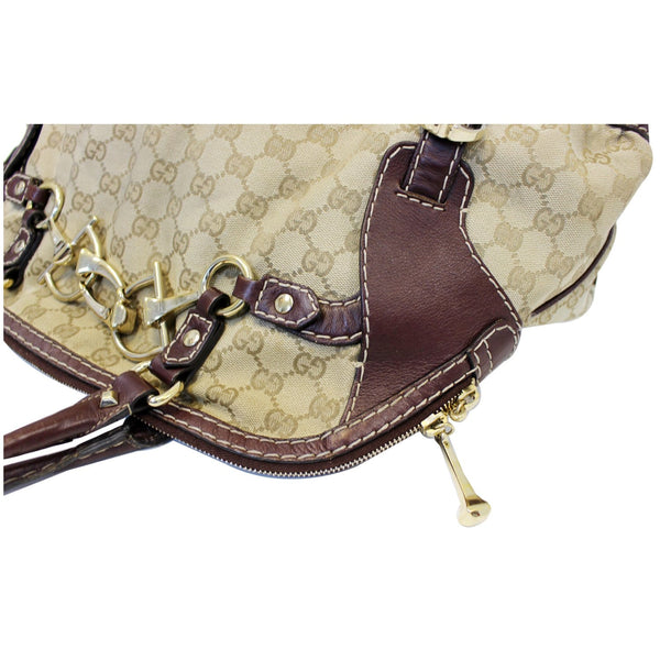 Beige GG Canvas Horsebit Nail Medium Boston Bag