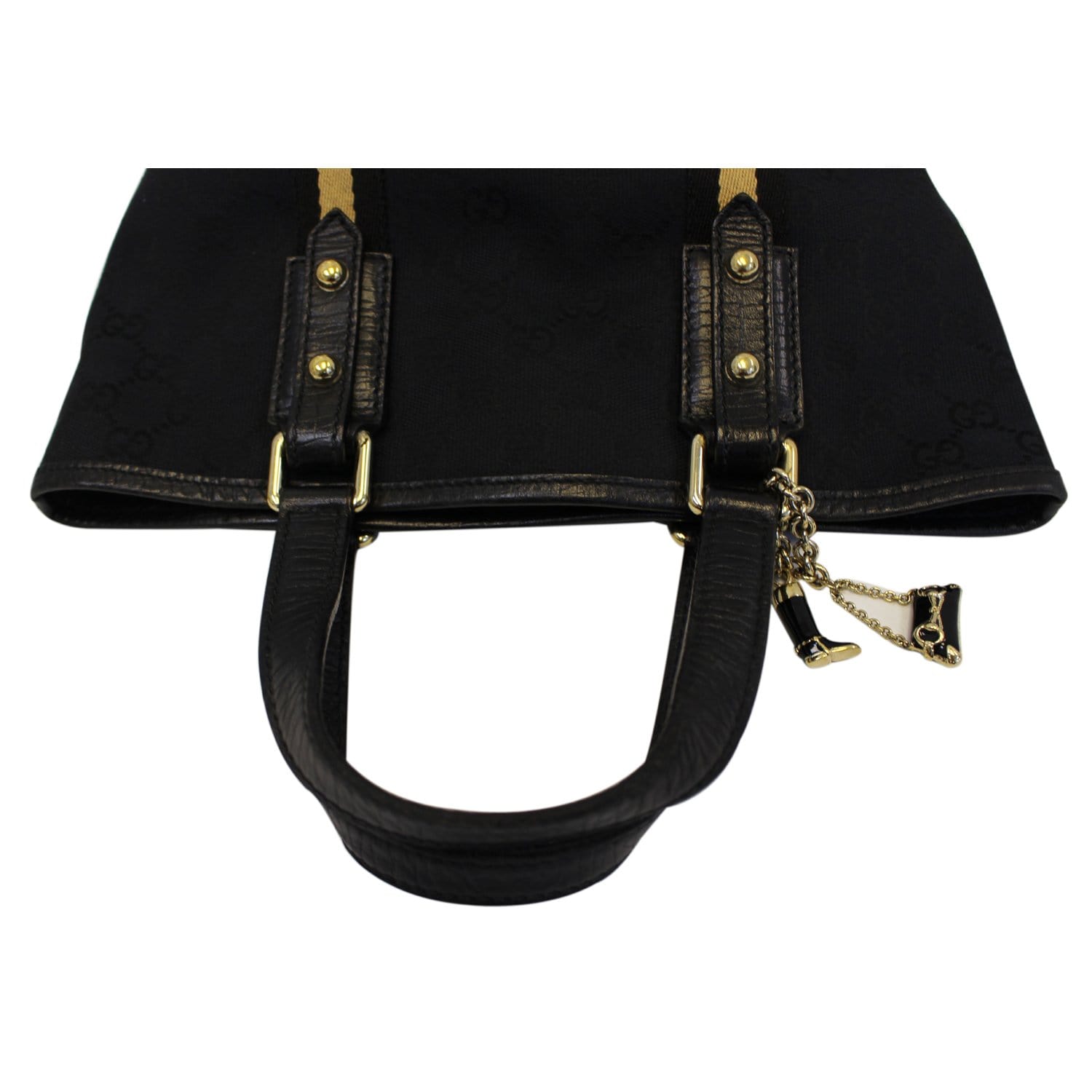 GUCCI Black GG Canvas Jolicoeur Yellow Stripe Small Tote Bag