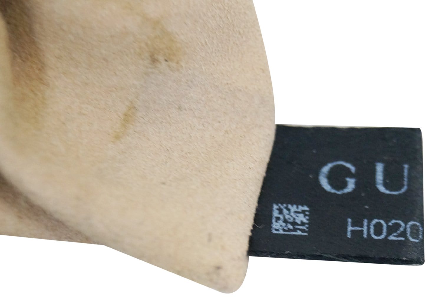 This particular bag features signature quilted leather with a interlocking G logo at the front flap and embroidered heart on the rear.