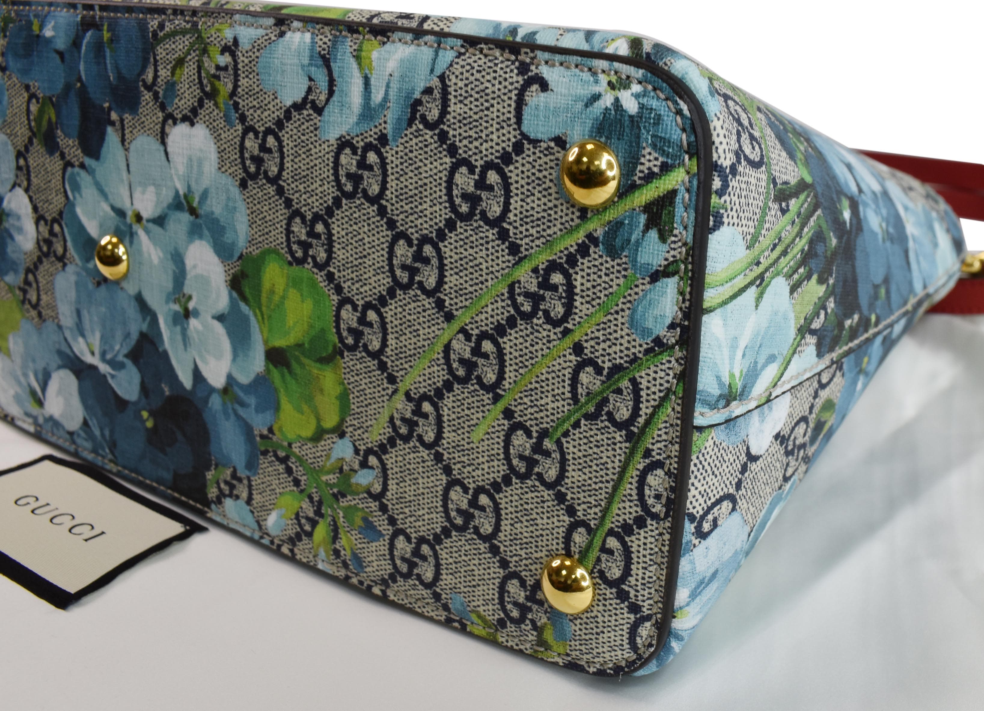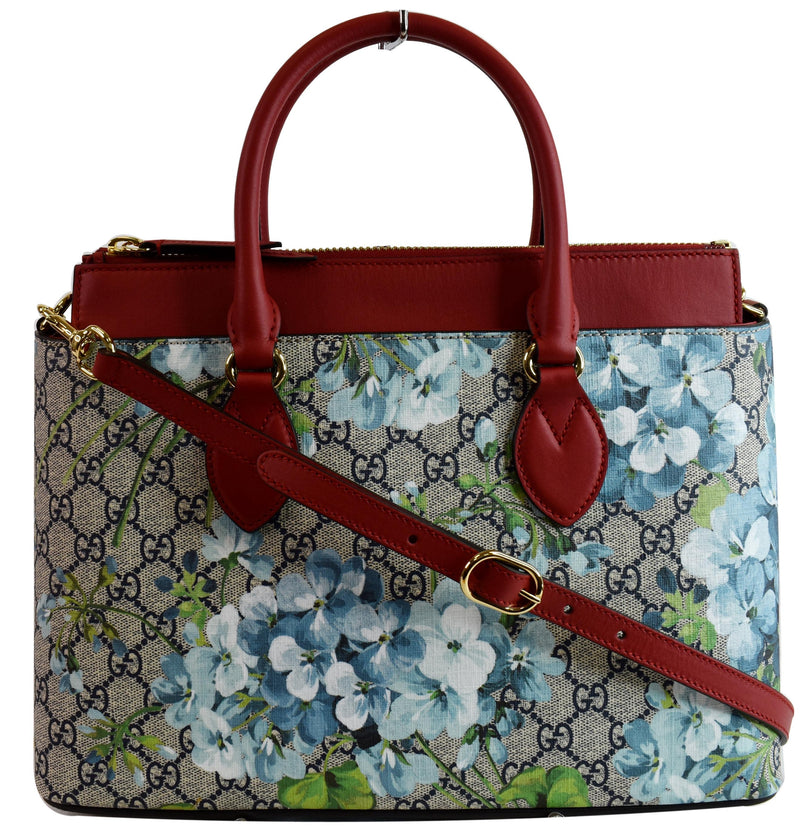 Blooms GG Floral Supreme Canvas Leather Satchel Bag Red 546316