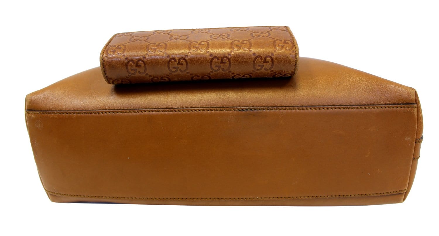 GUCCI Brown Leather Hobo Bag with Matching Wallet