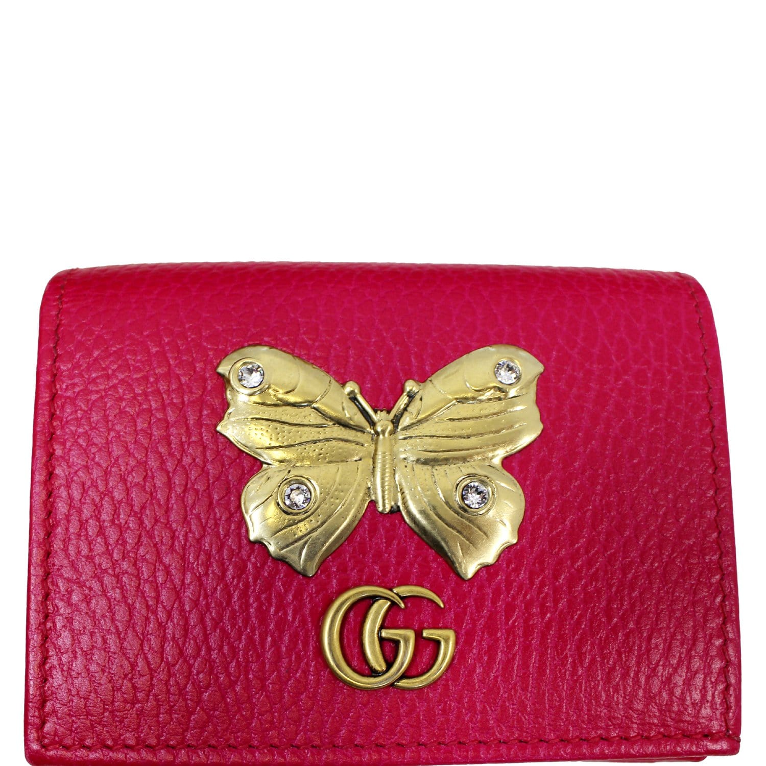 GUCCI Butterfly Leather Card Case Wallet Pink 499361-US