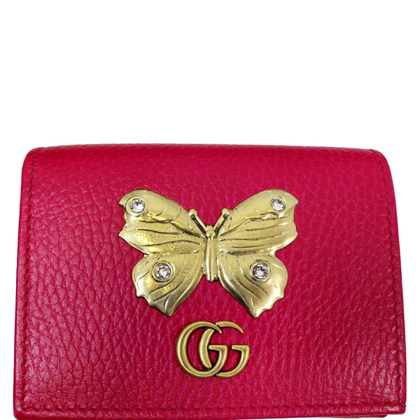 GUCCI Butterfly Leather Card Case Wallet Pink 499361
