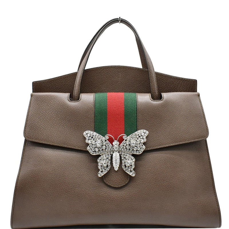 Butterfly Linea Totem Leather Large Top Handle Shoulder Bag Brown 500772