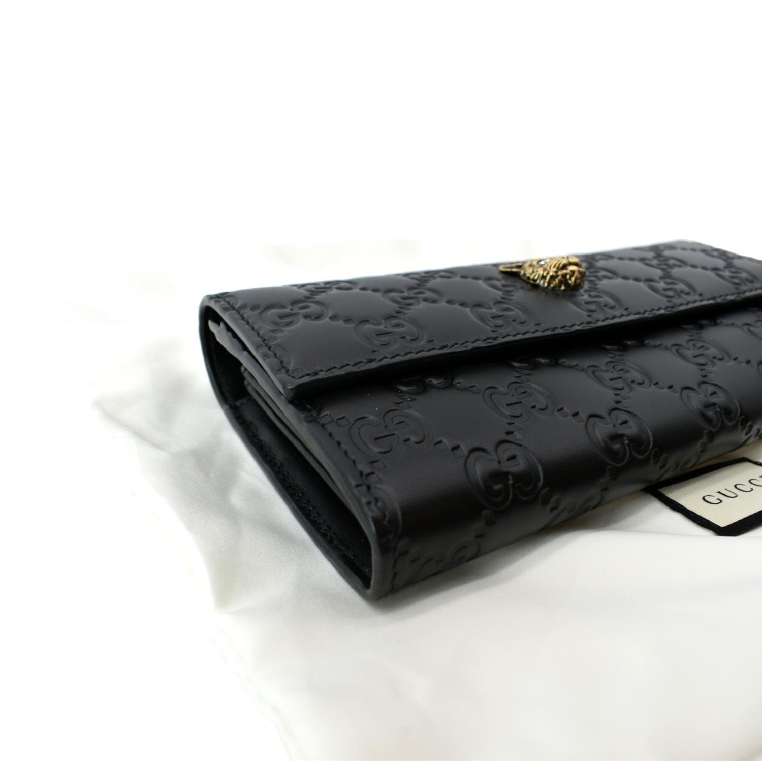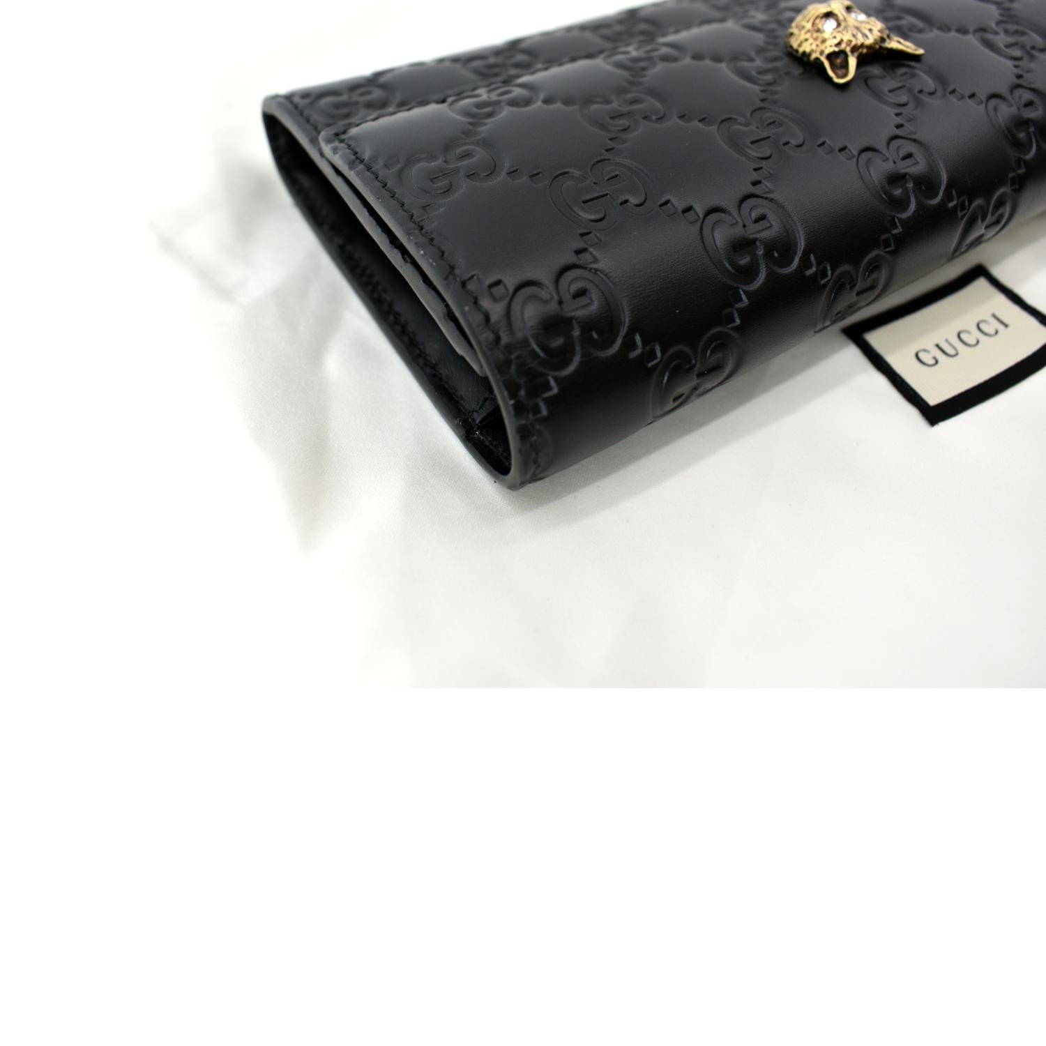 GUCCI Cat Head Leather Continental Wallet Black 548055