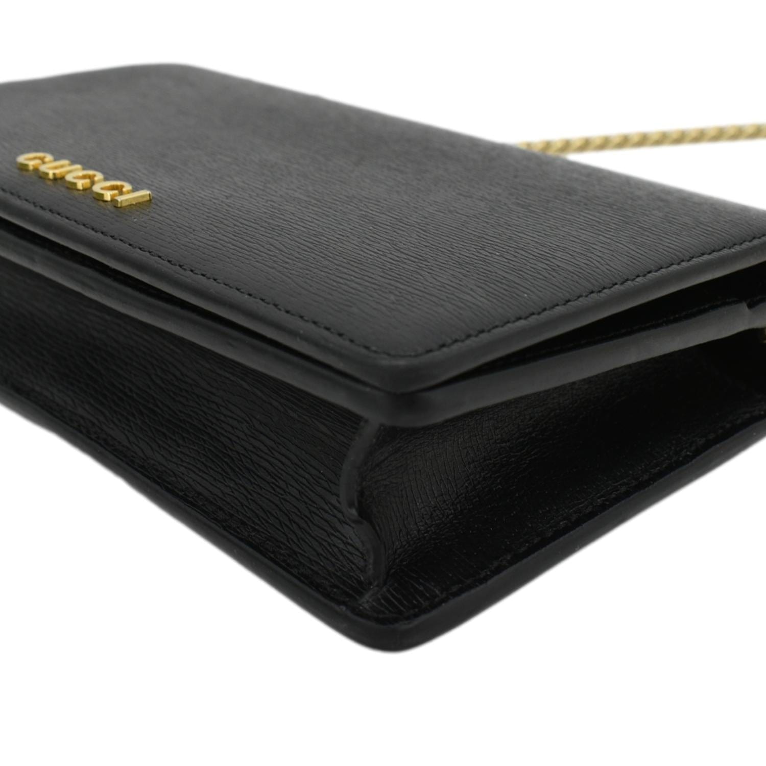 GUCCI Script Leather Chain Wallet Crossbody Bag Black 772643