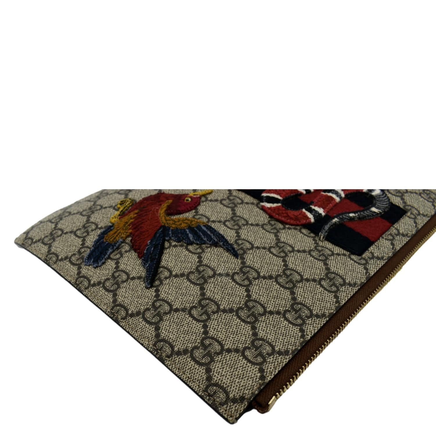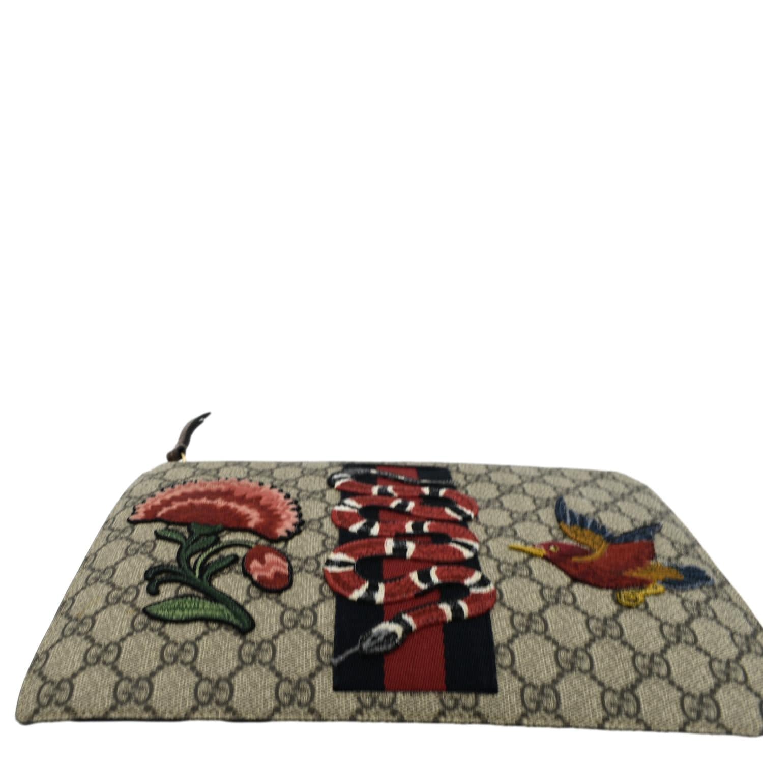 GUCCI King Snake Hummingbird GG Supreme Embroidered Clutch Bag Beige 431416