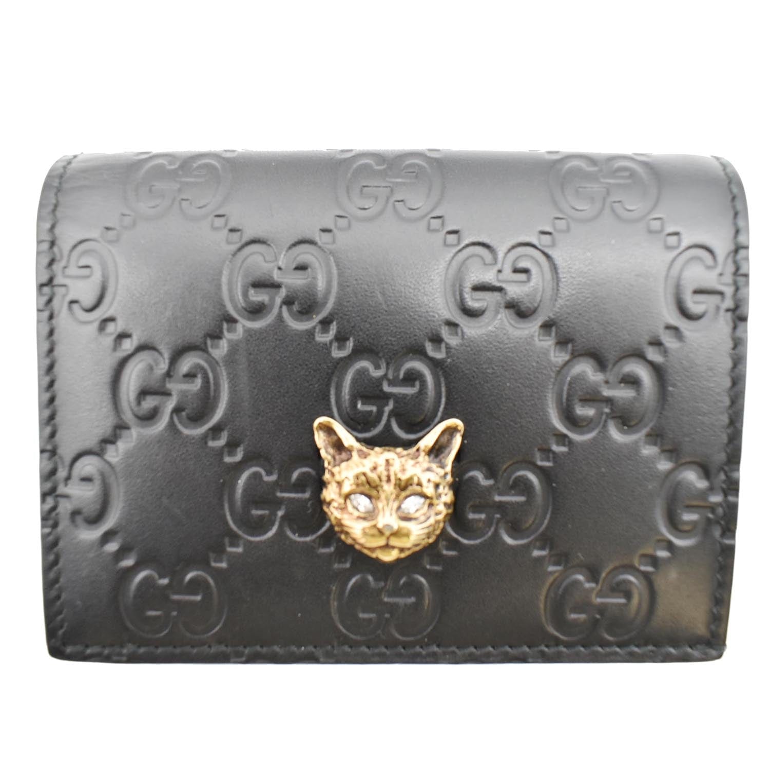 GUCCI Crystal Cat Guccissima Leather Card Case Wallet Black 548057