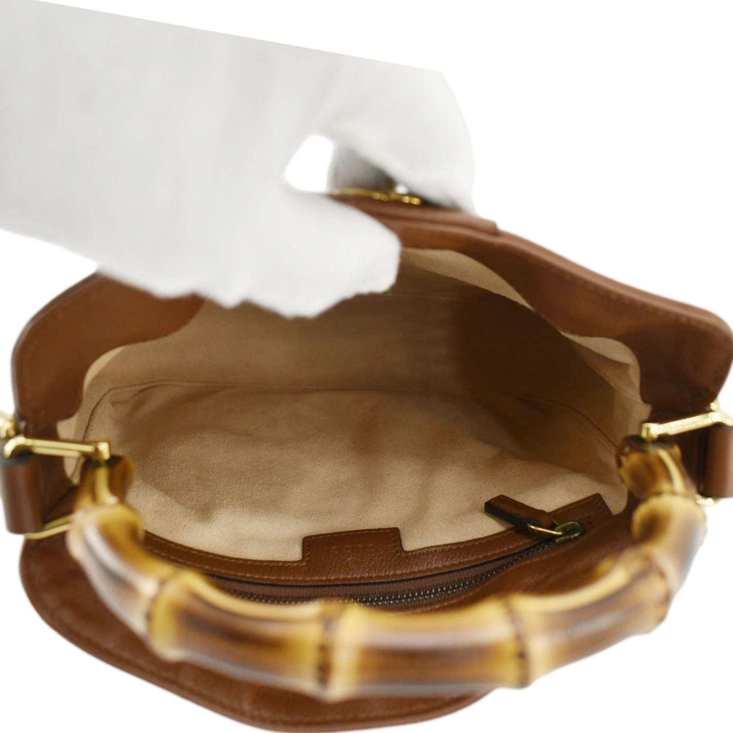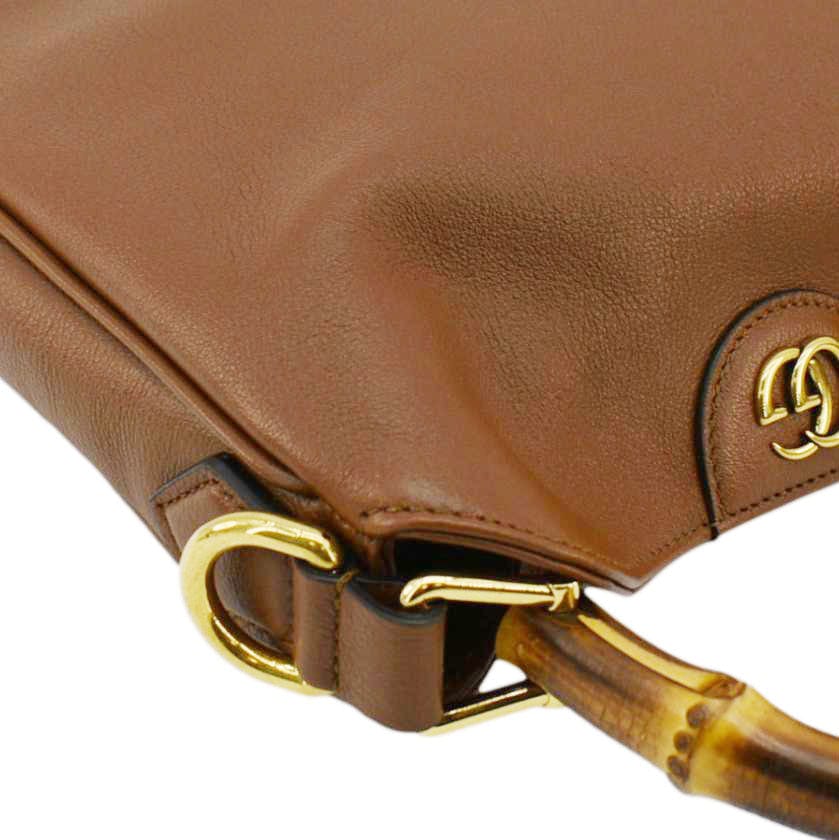 The GUCCI Diana Small Leather Tote Bag in rich chocolate brown features a sleek design, accented with signature bamboo handles and a detachable shoulder strap for versatile styling. Crafted from luxurious leather, it combines elegance with practicality, perfect for everyday use.