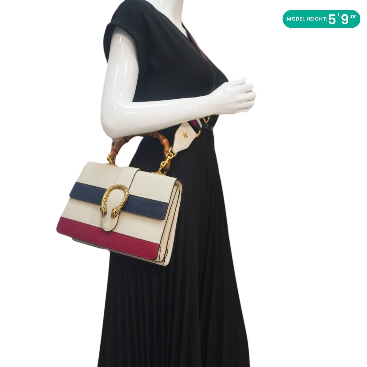 GUCCI Dionysus Bamboo Medium Leather Top Handle Shoulder Bag White 448075