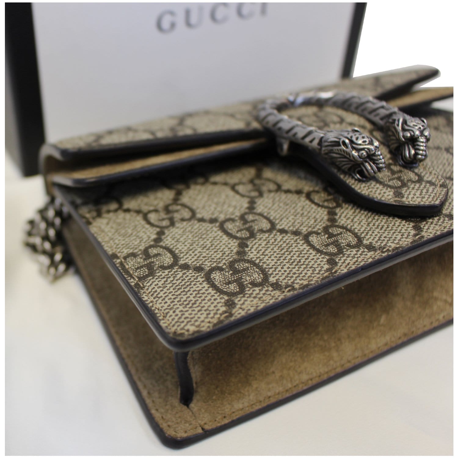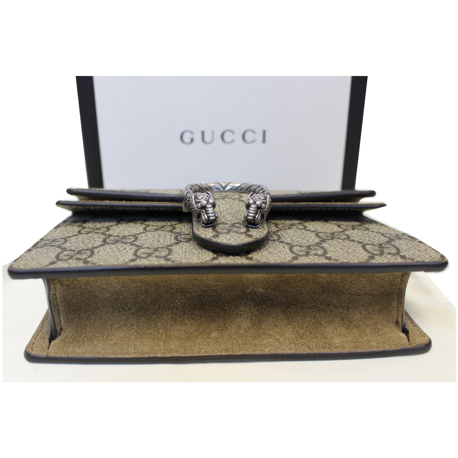 GUCCI Dionysus Super Mini GG Supreme Canvas Shoulder Crossbody Bag Taupe