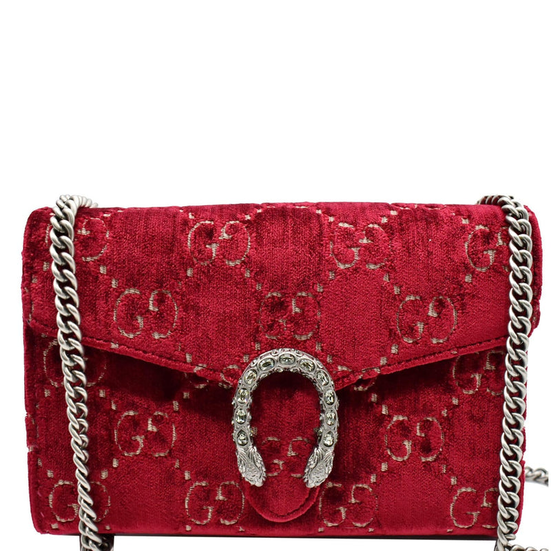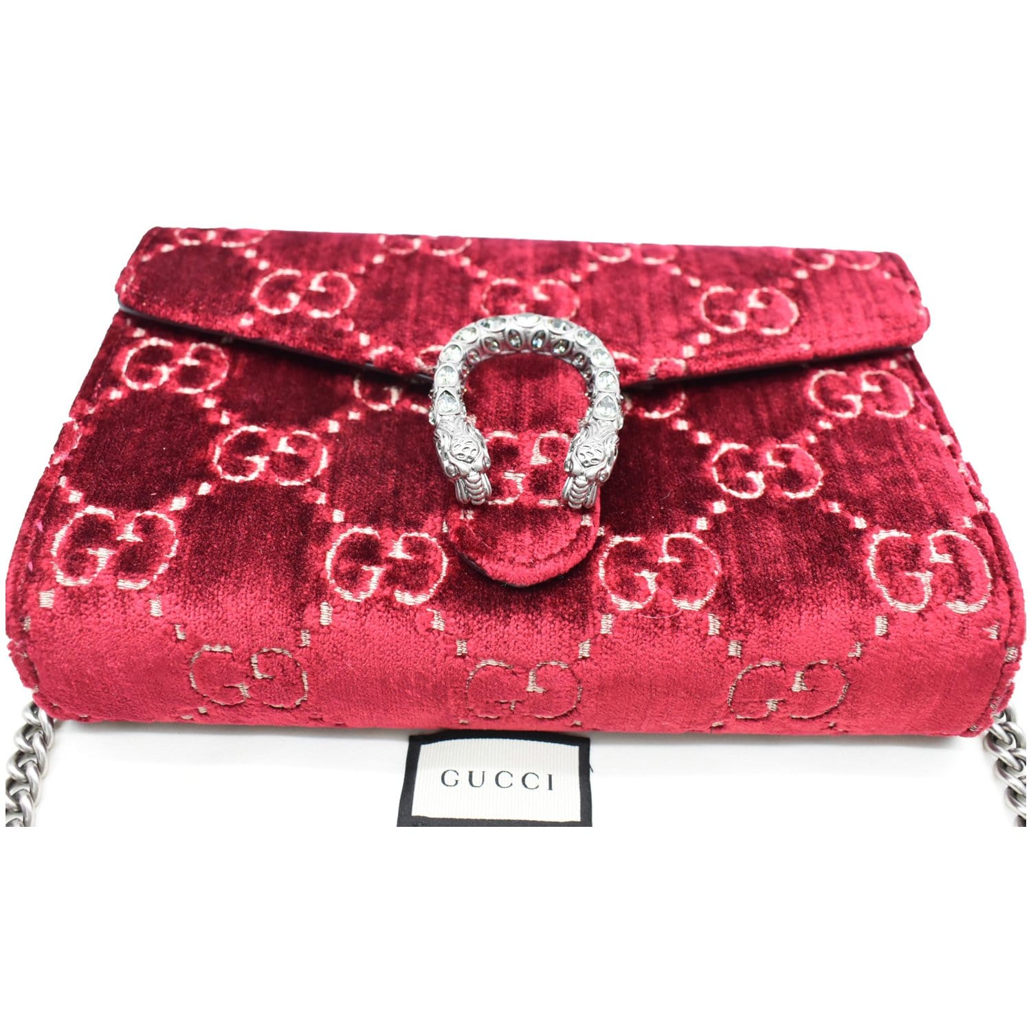 Dionysus Mini Velvet GG Monogram Chain Wallet Red 401231