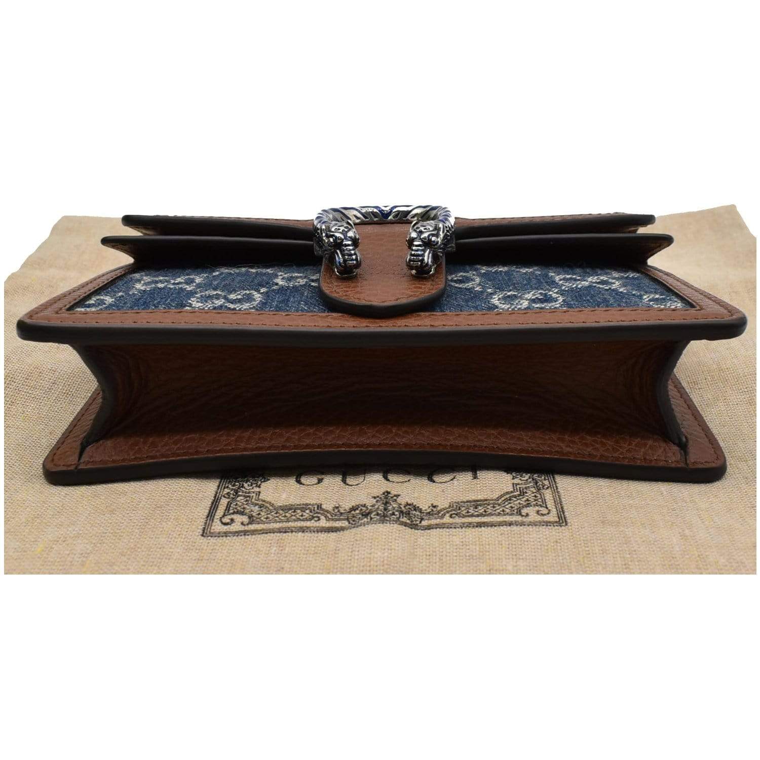 GUCCI Dionysus Super Mini GG Jacquard Denim Chain Shoulder Bag Dark Blue 476432