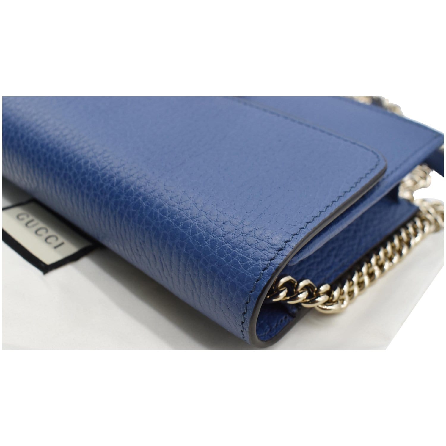 Dollar Interlocking G Calfskin Leather Chain Wallet Crossbody Bag Blue 510314
