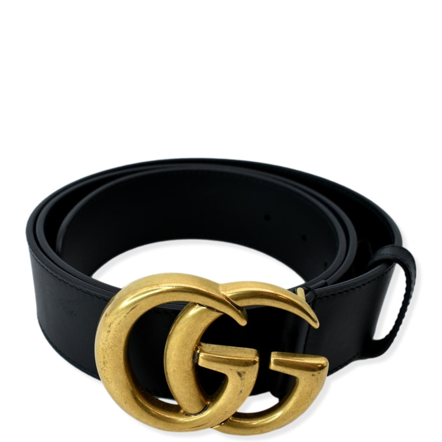 GUCCI Double G Buckle Leather Belt Black 397660