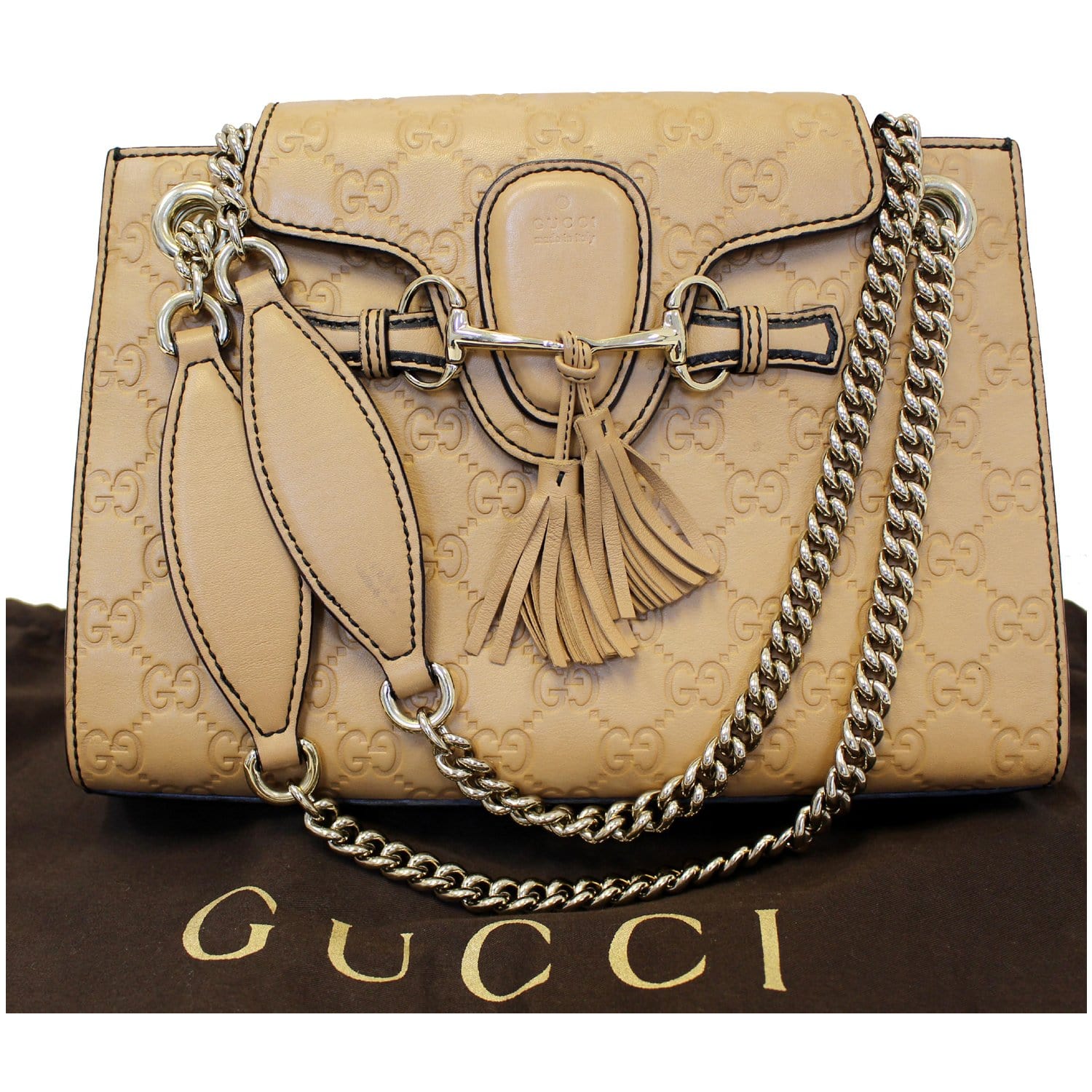 GUCCI Emily Guccissima Leather Chain Shoulder Bag Rose Beige 369621