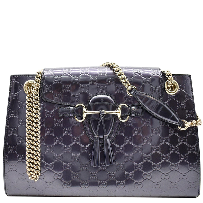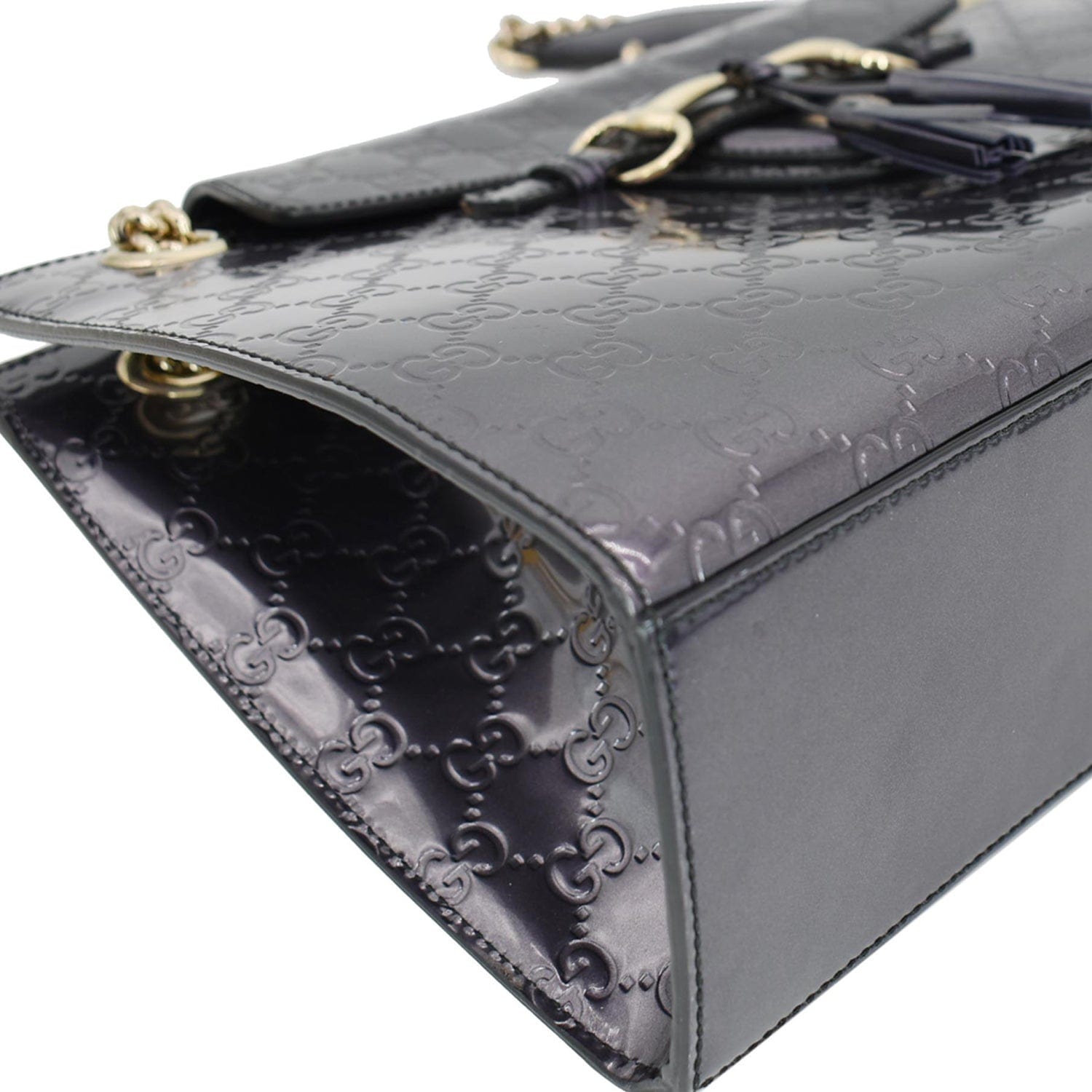 GUCCI Emily Large Guccissima Patent Leather Shoulder Bag Dark Violet 295403