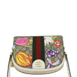 The GUCCI Ophidia Flora Dome Small GG Supreme Monogram Canvas Shoulder Bag in White features the iconic GG Supreme canvas adorned with the vibrant Flora print. This stylish shoulder bag offers a dome-shaped design and elegant gold-tone hardware.