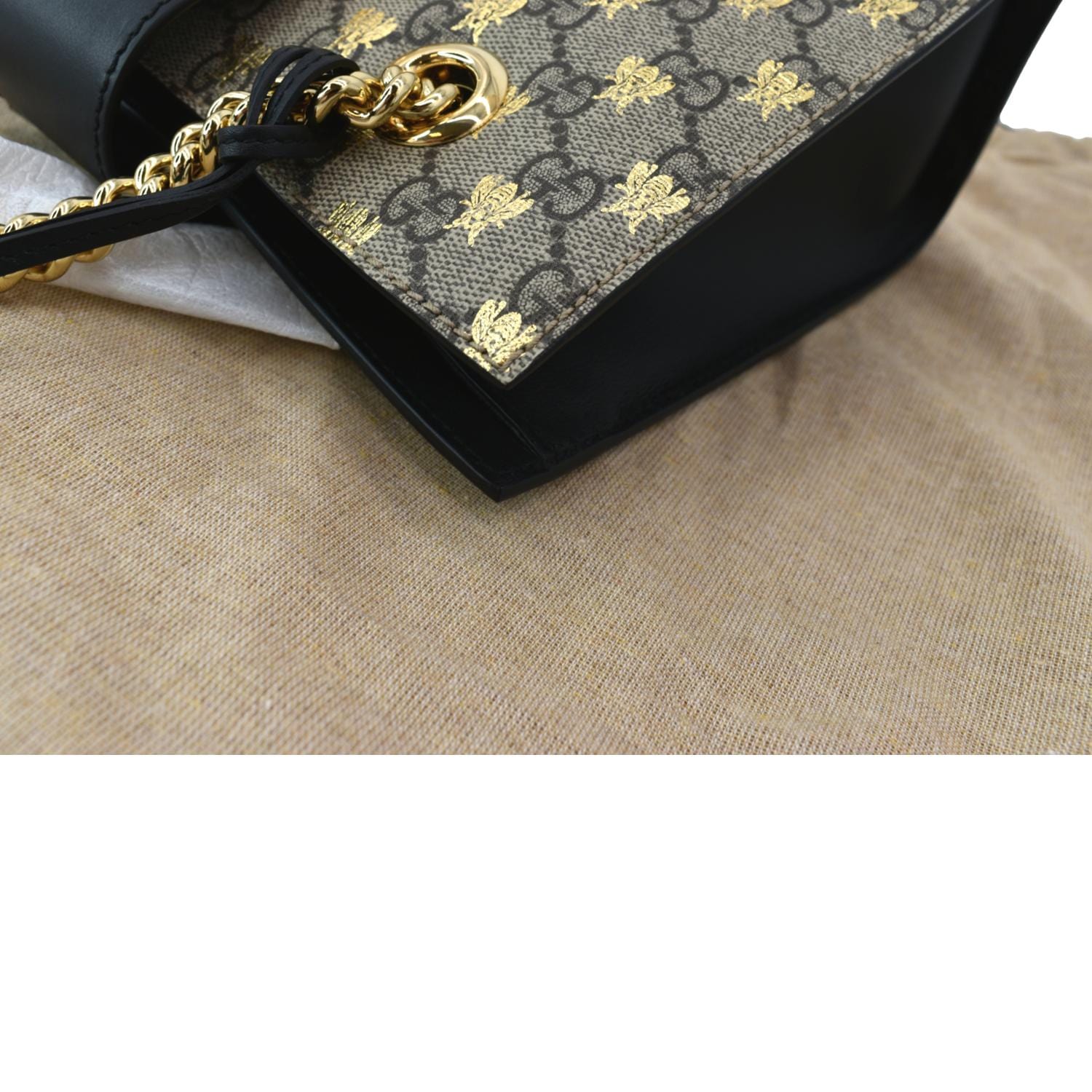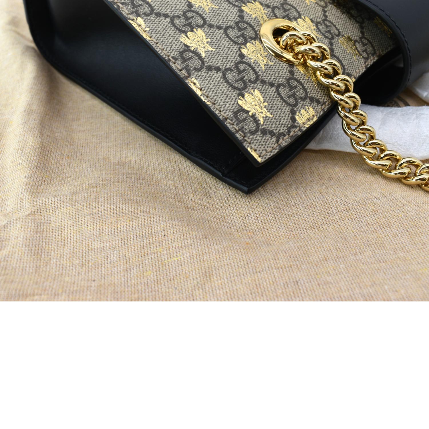 Gucci Ophidia Bees Padlock Small GG Supreme Canvas Tote Bag Beige 498156