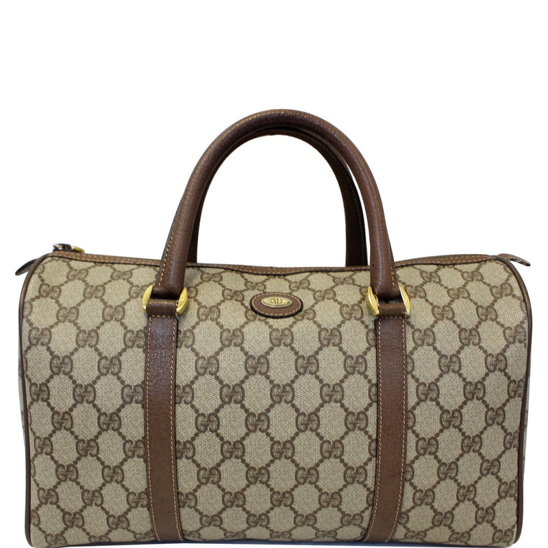 GUCCI GG Canvas Boston Satchel Bag Brown