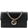 GUCCI GG Interlocking Pebbled Leather Crossbody Bag Black 615523