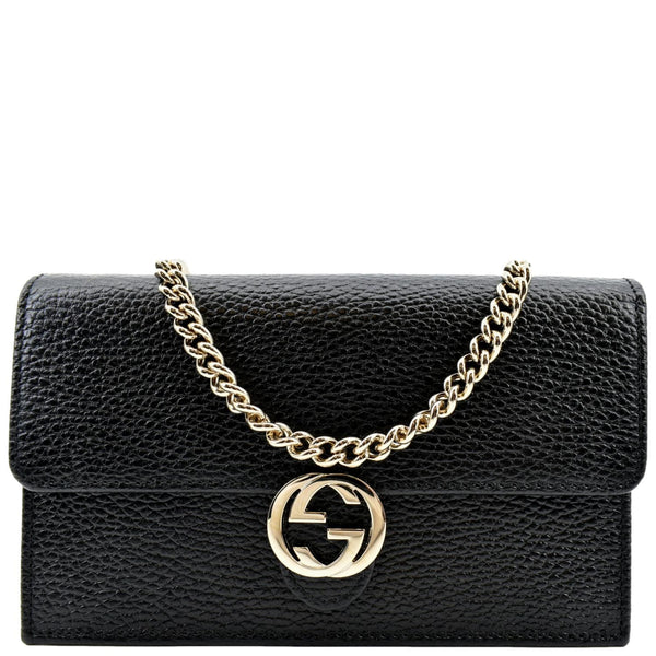 GG Interlocking Pebbled Leather Crossbody Bag Black 615523