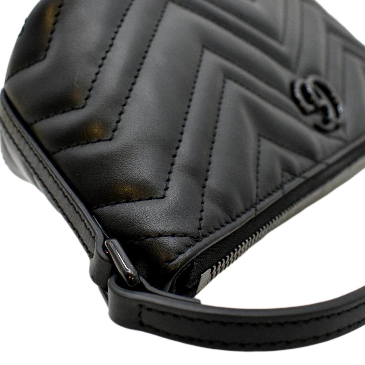 GUCCI GG Marmont Matelasse Chevron Leather Shoulder Bag Black 739166