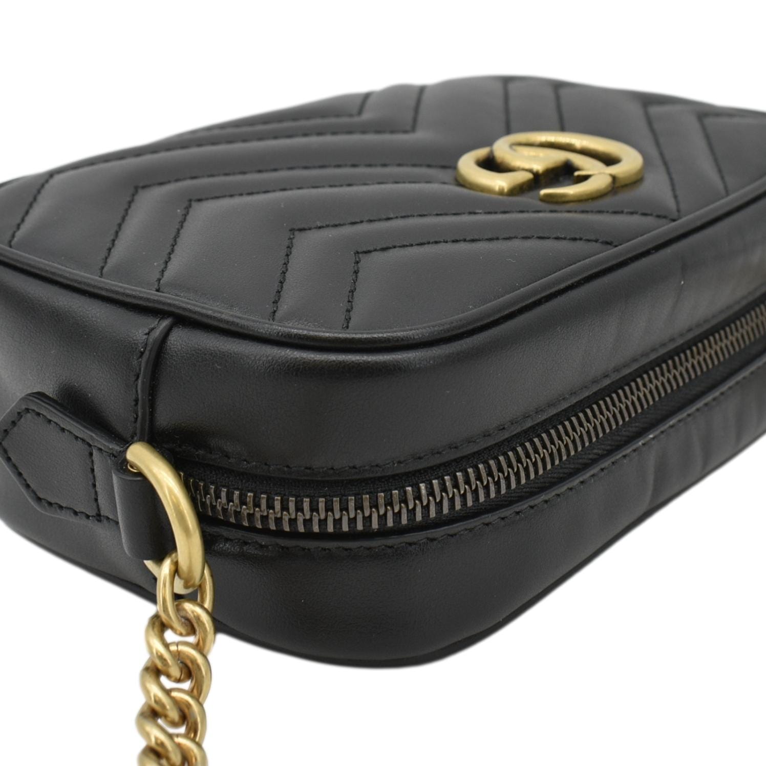 GUCCI Matelasse GG Marmont Mini Crossbody Black Camera Bag